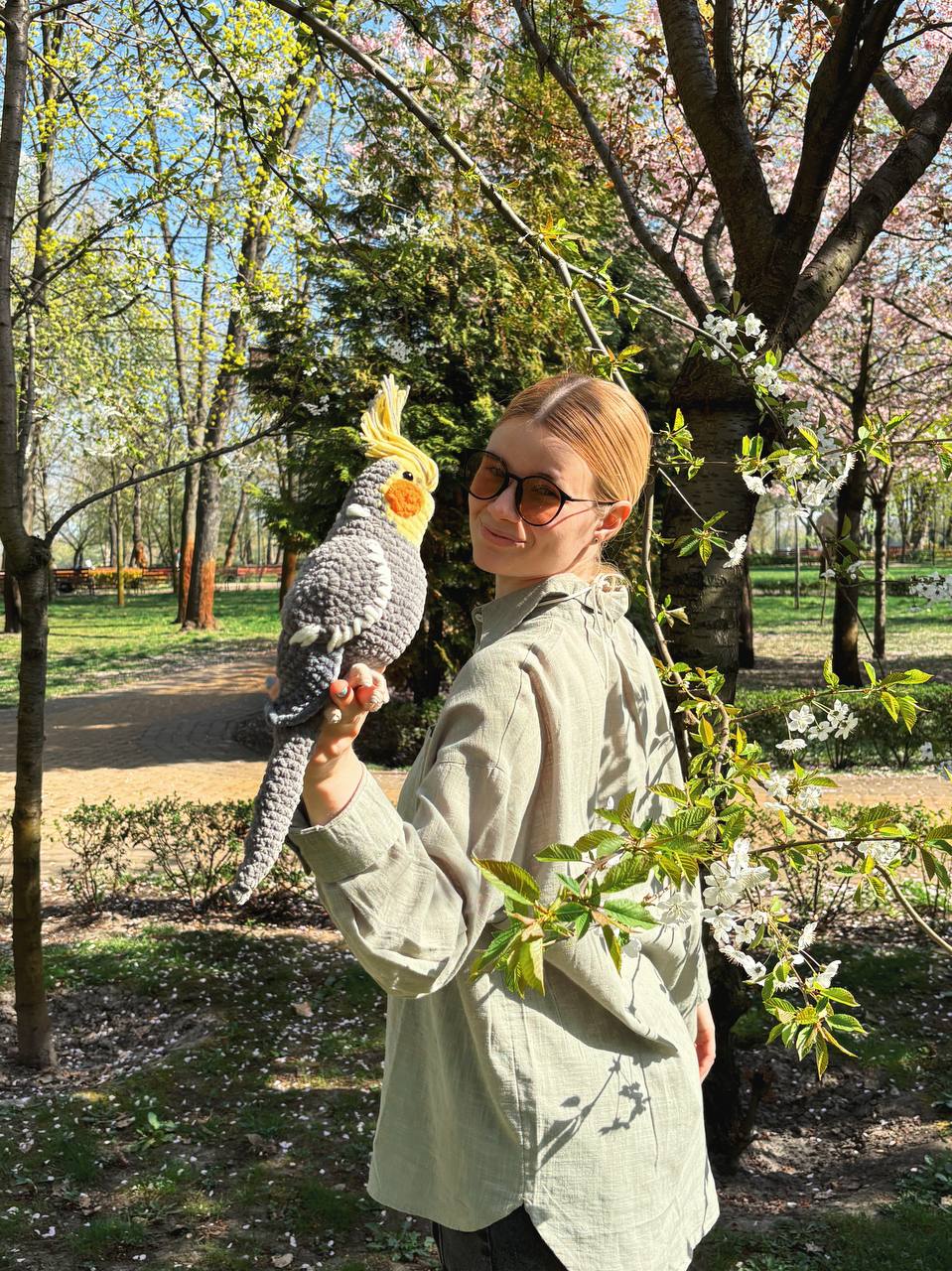 Даша и ее первый попугайчик. Он сразу же «залетел» в тикток, и девушка получила много приятных слов о его реалистичности. Фото: предоставлено Дашей Измалковой