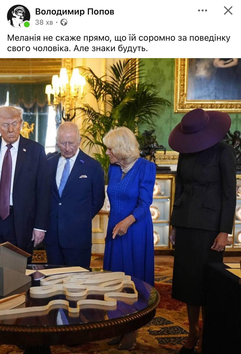 Но начнем с визита президента США в Великобританию. Обсуждают не столько результаты встречи с королевской семьей и премьер-министром, сколько шляпку Мелании и очередные ляпы Дональда Трампа.