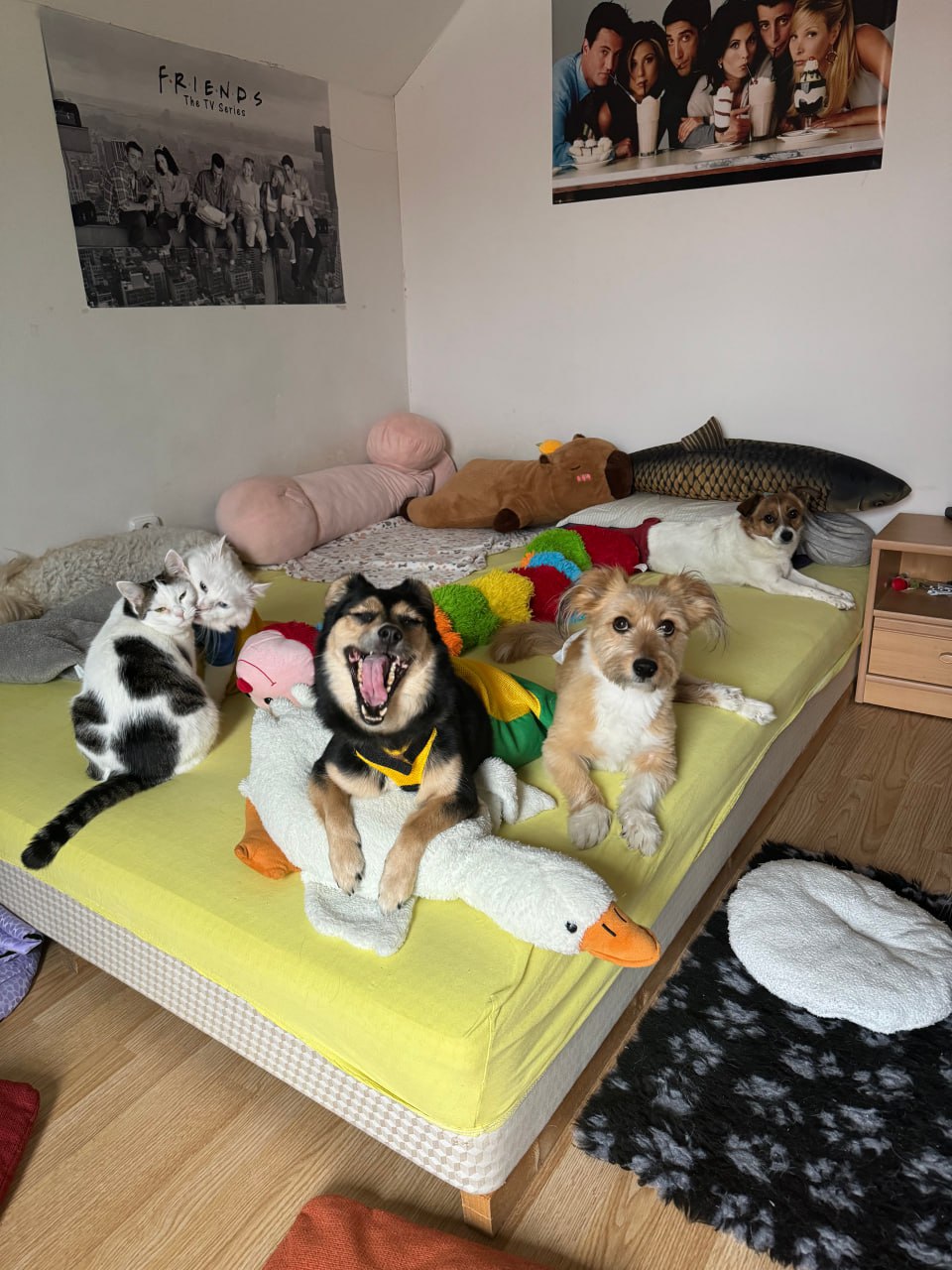 Вроде все животные здоровы, но со своими проблемами. Живем все под одной крышей, спим в одной комнате.