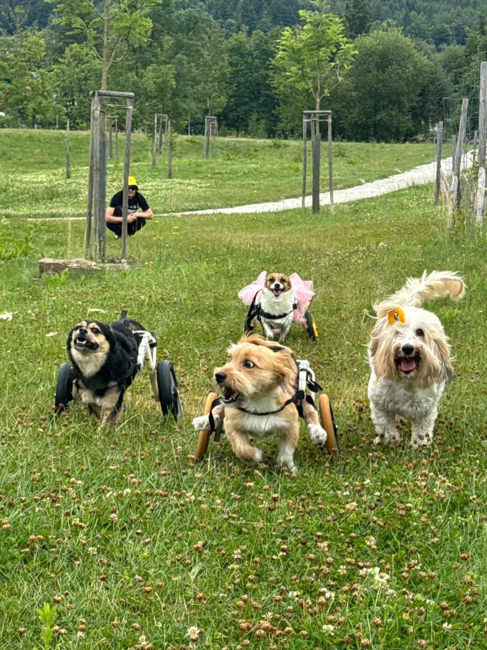 А когда мы надеваем собакам коляски, в эти моменты они самые счастливые! Я очень радуюсь, что они могут так бегать. Ради этого мы и стараемся.
