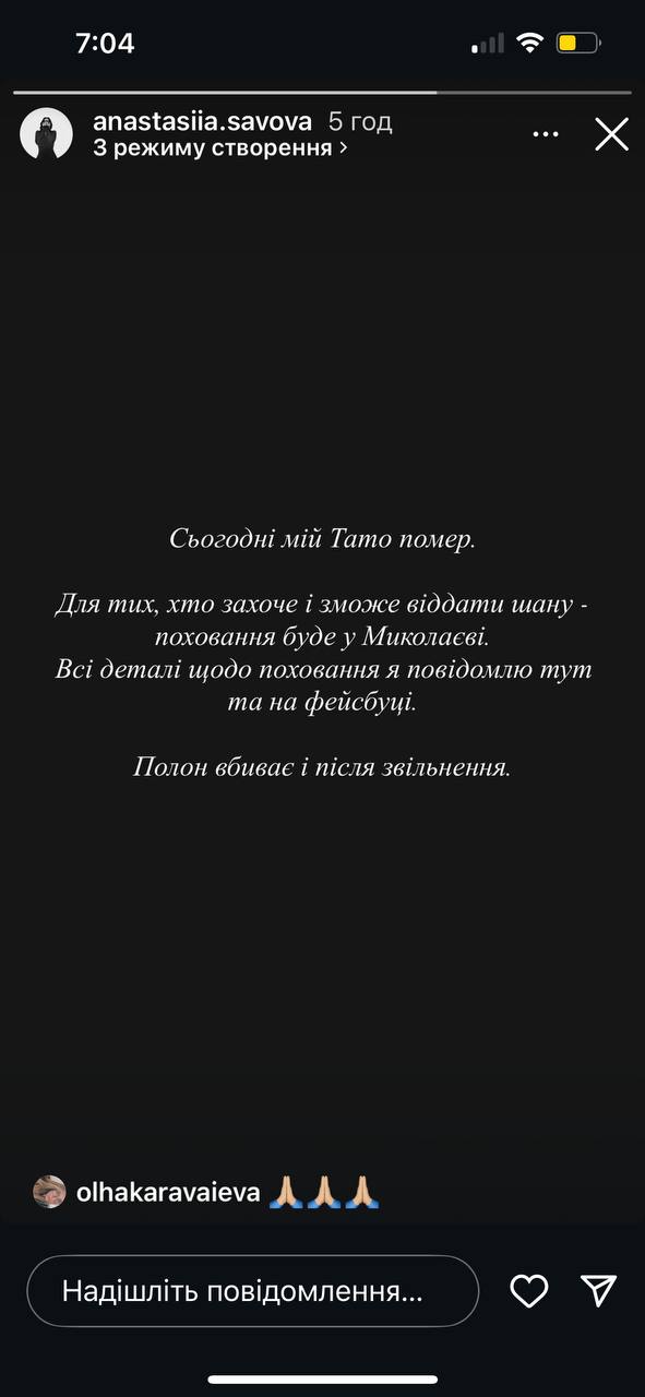 Она отметила, что захоронение военнослужащего состоится в его родном Николаеве. Савов скончался в возрасте 46 лет. Кроме дочери, у него осталась мать.