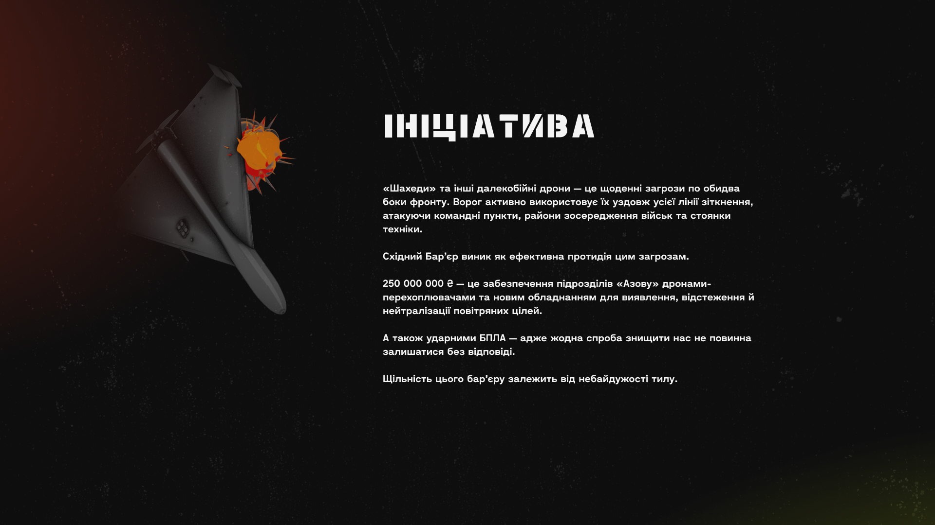 Этот сбор спланирован и организован в ответ на острую потребность в обороне тех районов линии боевого столкновения, которые подвергаются интенсивным атакам «шахедами» и другими дальнобойными беспилотниками. Противник усиленно атакует ими командные пункты, районы сосредоточения войск, стоянки техники.