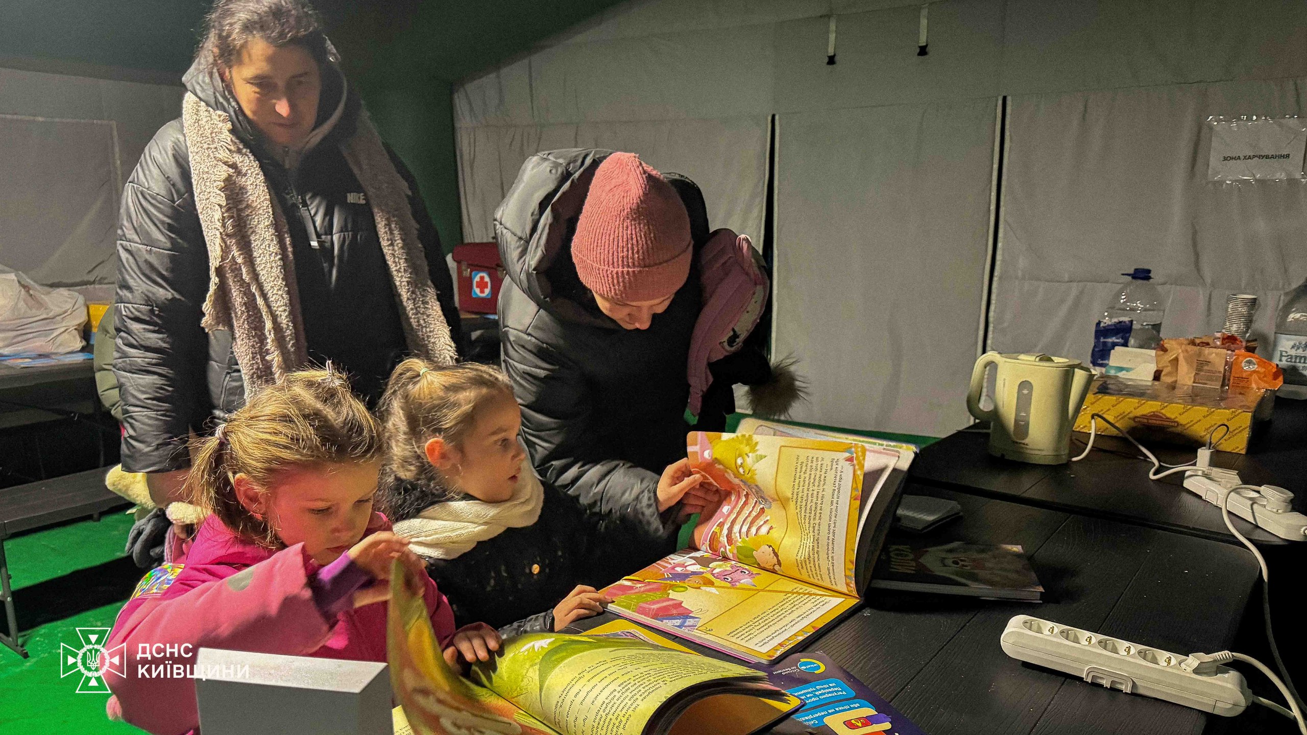 Если ребенок замерз на улице – зайдите вместе с ним в "пунк незламности" – там тепло и есть горячий чай. Фото: ГСЧС Киева