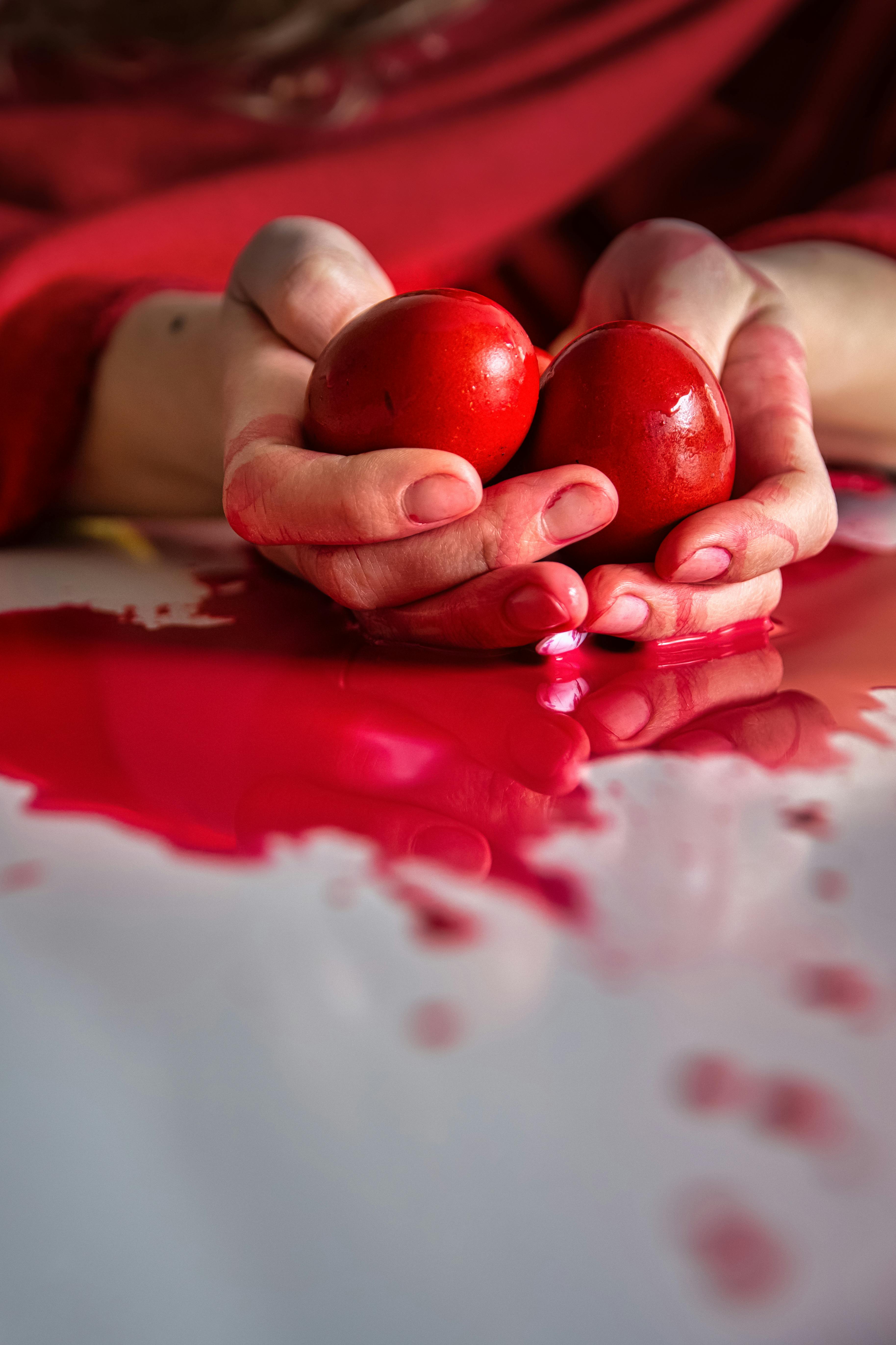 Существует также древняя легенда, связанная с традицией окрашивания яиц в красный цвет. По преданию Мария Магдалина принесла римскому императору Тиберию яйцо как символ Воскресения и сказала: «Христос воскрес!». На что тот ответил, что это так же невозможно, как и то, что яйцо станет красным — и тотчас оно изменило цвет. Именно поэтому красный стал одним из самых распространенных пасхальных цветов.