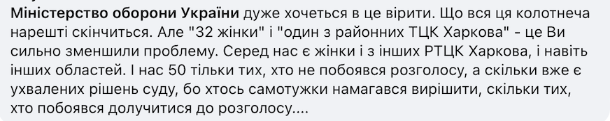 Комментарий под постом Минбороны. Фото: facebook.com/MinistryofDefence.UA