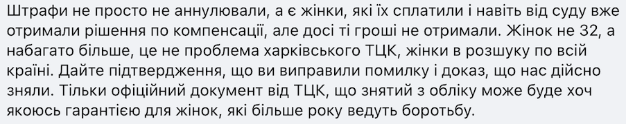 – Мы решили вопрос статуса «в розыске» для женщин в приложении "Резерв+". Оно возникло из-за технической ошибки в одном из районных ТЦК - женщин поставили на военный учет по ошибке. Нашли 32 таких случая. Со всех снят статус «в розыске» еще 2 недели назад. Штрафы никто не налагал – для этого не было причин, - говорится в сообщении.