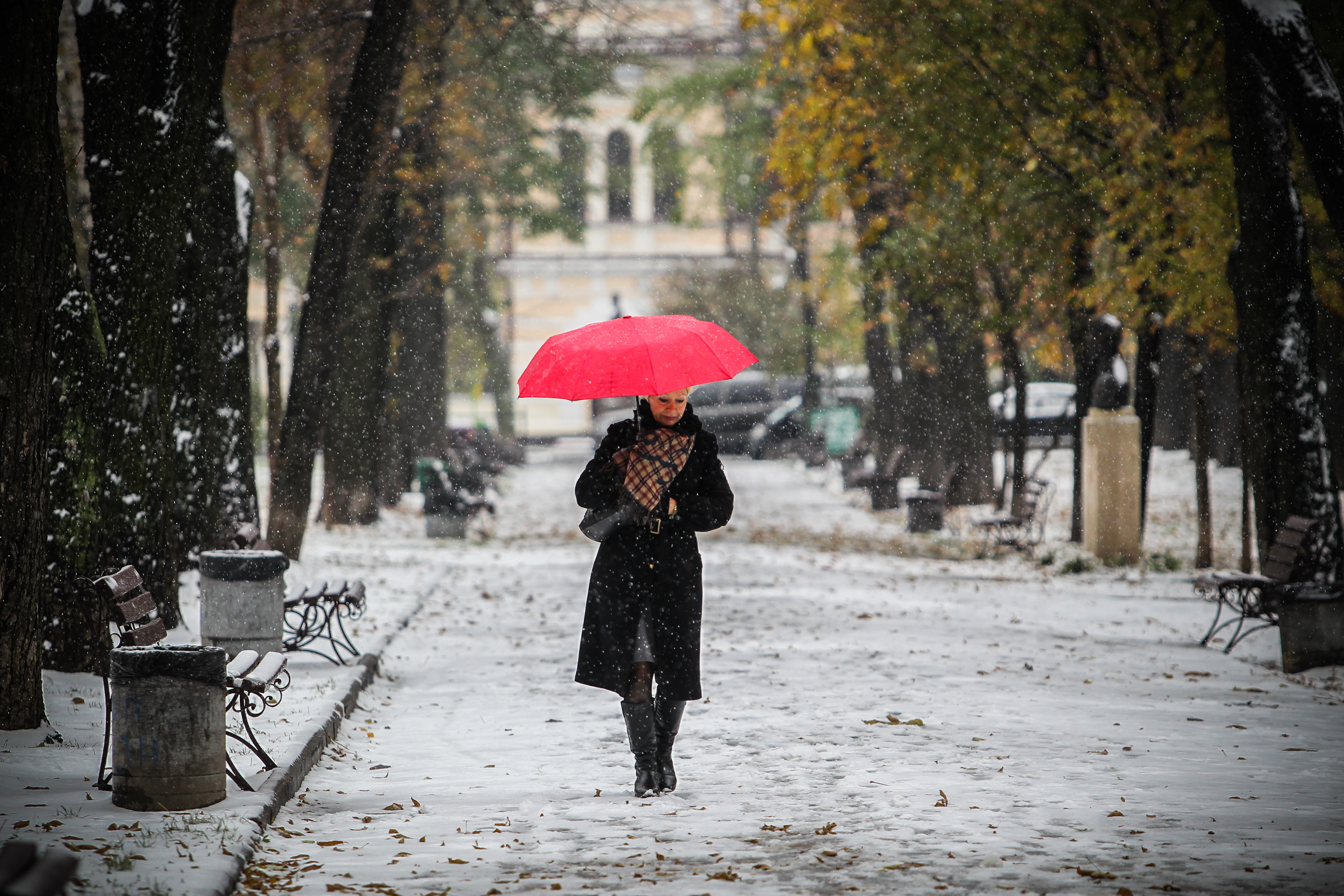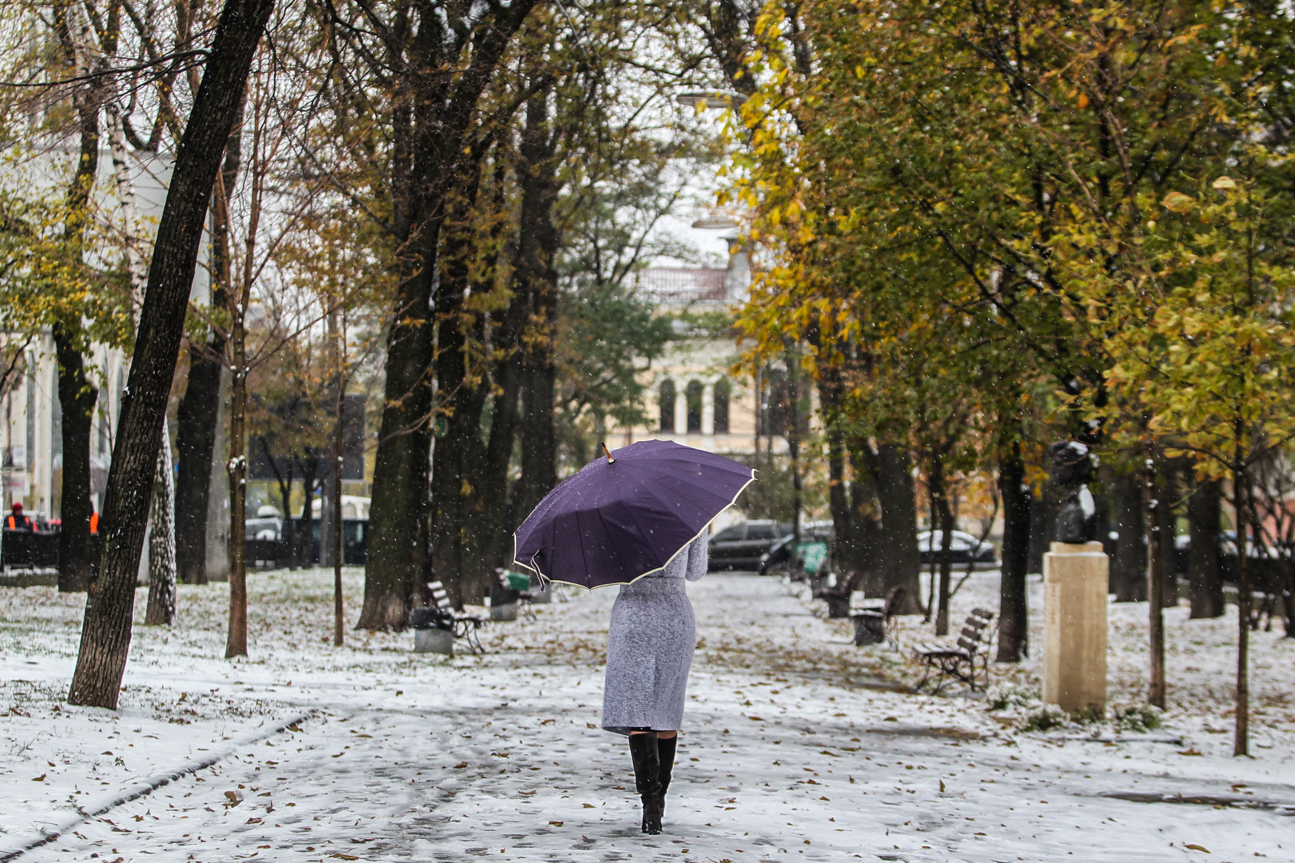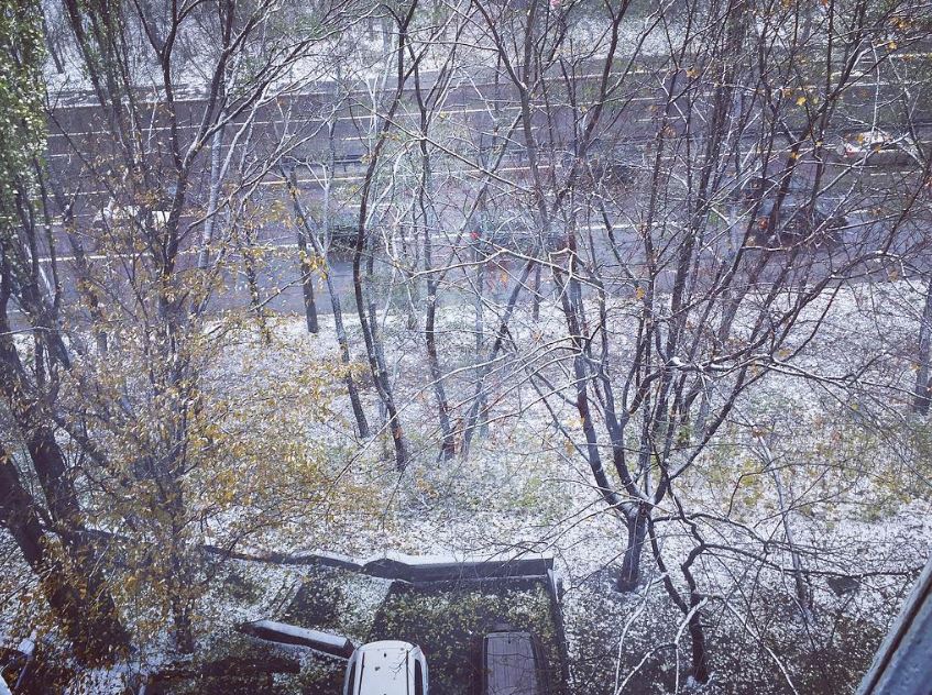 Киевляне встретили ноябрьский снегопад с шампанским и апельсинами