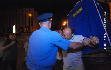 Толкались около 10 минут, а потом договорились установить туалет ниже от "Украинского Дома" до шести утра, когда можно будет согласовать с властью.