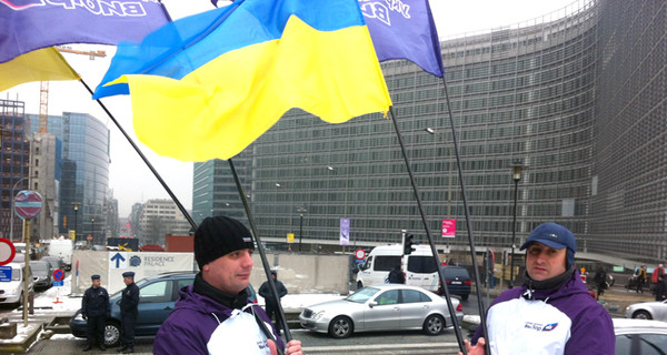 Представители Общественного движения "Украинский выбор" провели акцию протеста возле здания Совета Европейского Союза в Брюсселе, где сегодня, 25 февраля 2013 года, проходит саммит Украина – ЕС.