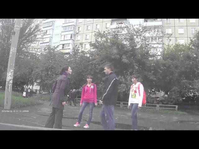 Пара стоит на улице и о чем-то спорит. Молодой человек тянет свою вторую половинку за руку, пытаясь куда-то увести. Та выскользает из его хватки и, демонстративно развернувшись, уходит. Однако плечистый мужчина мигом сковывает ее в свои объятия. Девушка отвечает неуверенным ударом по голове. Но мужчина не сдается. Цепко держит свою пассию. Все это действие снимает видеорегистратор в стоящей рядом машине.