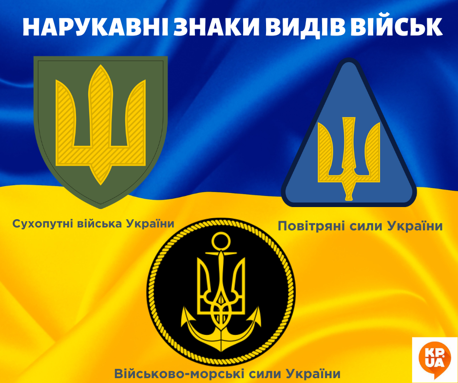 Только у Сухопутных войск есть шесть разных по внешнему виду нарукавных знаков (различаются цветом трезубца и фоном, на котором он изображен).
