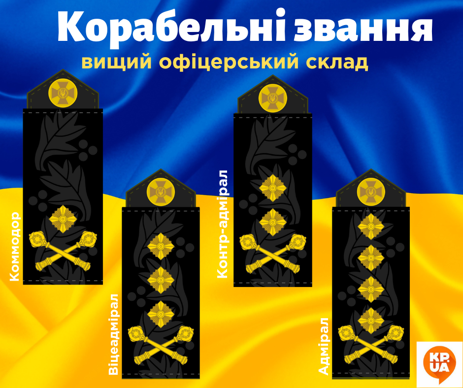 На одну ступень расширился список высших офицерских званий на флоте. Погоны коммодора – аналогия бывшим контр-адмиралам. Хотя контр-адмиралы на флоте тоже есть. Это звание равнозначно дореформовскому вице-адмиралу. А военные, которые до 2020 года имели звание адмирала, получили новые погоны – вице-адмирала. Самый главный на флоте – адмирал. Командующий ВМС Украины Алексей Неижпапа имеет звание вице-адмирала.