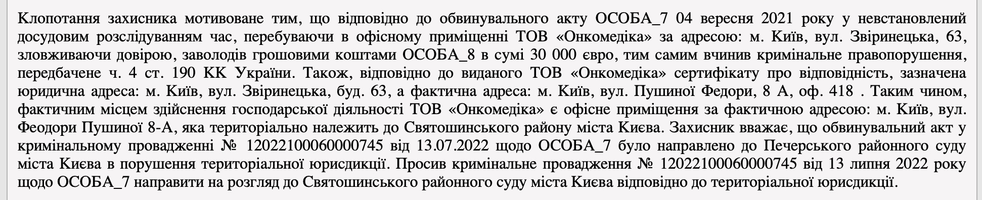 В настоящее время судебное разбирательство этого уголовного дела между двумя учредителями «Медицинского конструктора» в активной фазе, последнее определение суда касается частичного ареста имущества Пугача и решения о его поводе в суд, поскольку Пугач, ссылаясь на службу в ВСУ, на заседание не появляется.