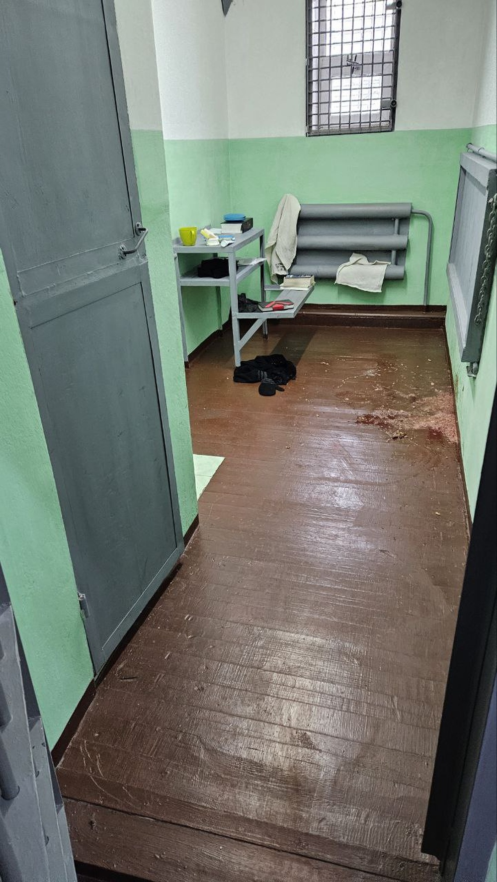 Кроме того, Юлия Навальная опубликовала фотографию камеры, в которой, по ее словам, умирал оппозиционер, и на которой видна рвота.