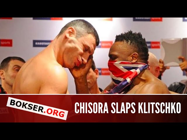 Чисора на ринге до начала поединка снова попытался "подкатить" с претензиями к Виталию. Старшего брата свой широкой спиной заслонил младший. Небольшая словесная перепалка закончилась тем, что Дерек, набрав в рот воды, плюнул в лицо украинцу. Владимир стойко вытерпел и это.