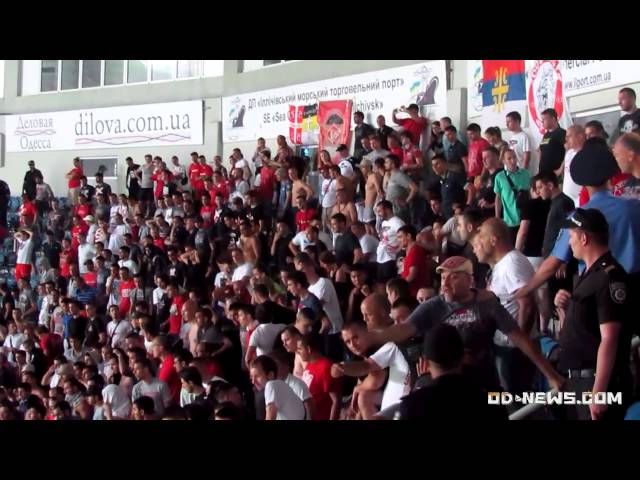 Однако игра запомнится не только победой одесситов: после третьего мяча, забитого Антоновым с пенальти на 78-й минуте матча, на трибунах началась массовая драка. По данным СМИ, пострадало 20 местных жителей, один из них находится в тяжелом состоянии.