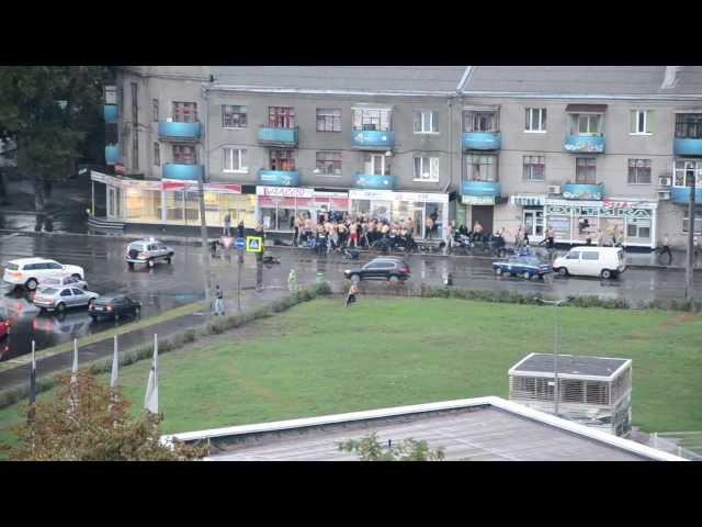 Несколько десятков человек устроили так называемый "махач" в центре города, не обращая внимания на милицейские сирены.