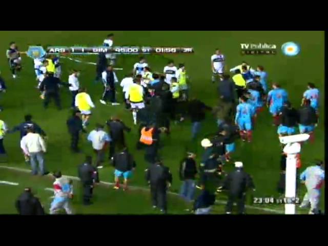 Футболистам было показано пять красных карточек после драки - две были показаны игрокам "Арсенала" и три - футболистам "Химнасии".
