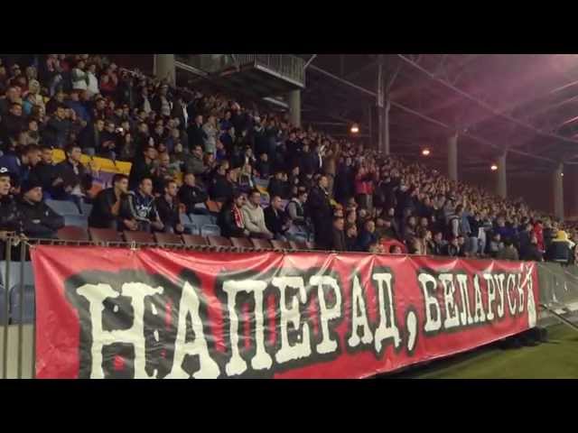 Болельщики обеих сборных во время игры перекрикивались: "Слава Украине" и "Жыве Беларусь". Звучали и другие лозунги.