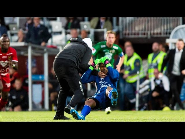 Матч между Йенчепинг и Эстерсунд не был доигран из-за хулигана, который выскочил на поле и ударил вратаря, сообщило isport.ua.