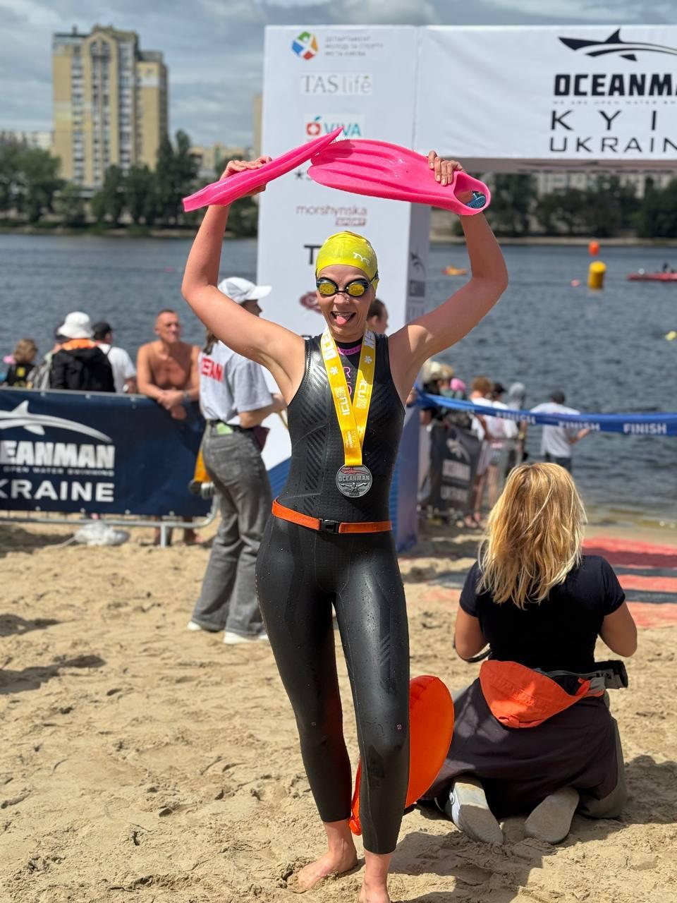 Другой пример - Настя Степанчук, любительница, которая плавает два с половиной года. Ее муж служит в ВСУ, и для нее это был личный вызов. Бывали моменты, когда она засыпала на воде, но находила силы двигаться дальше. На финише эмоции были колоссальными - и у нее, и у зрителей.