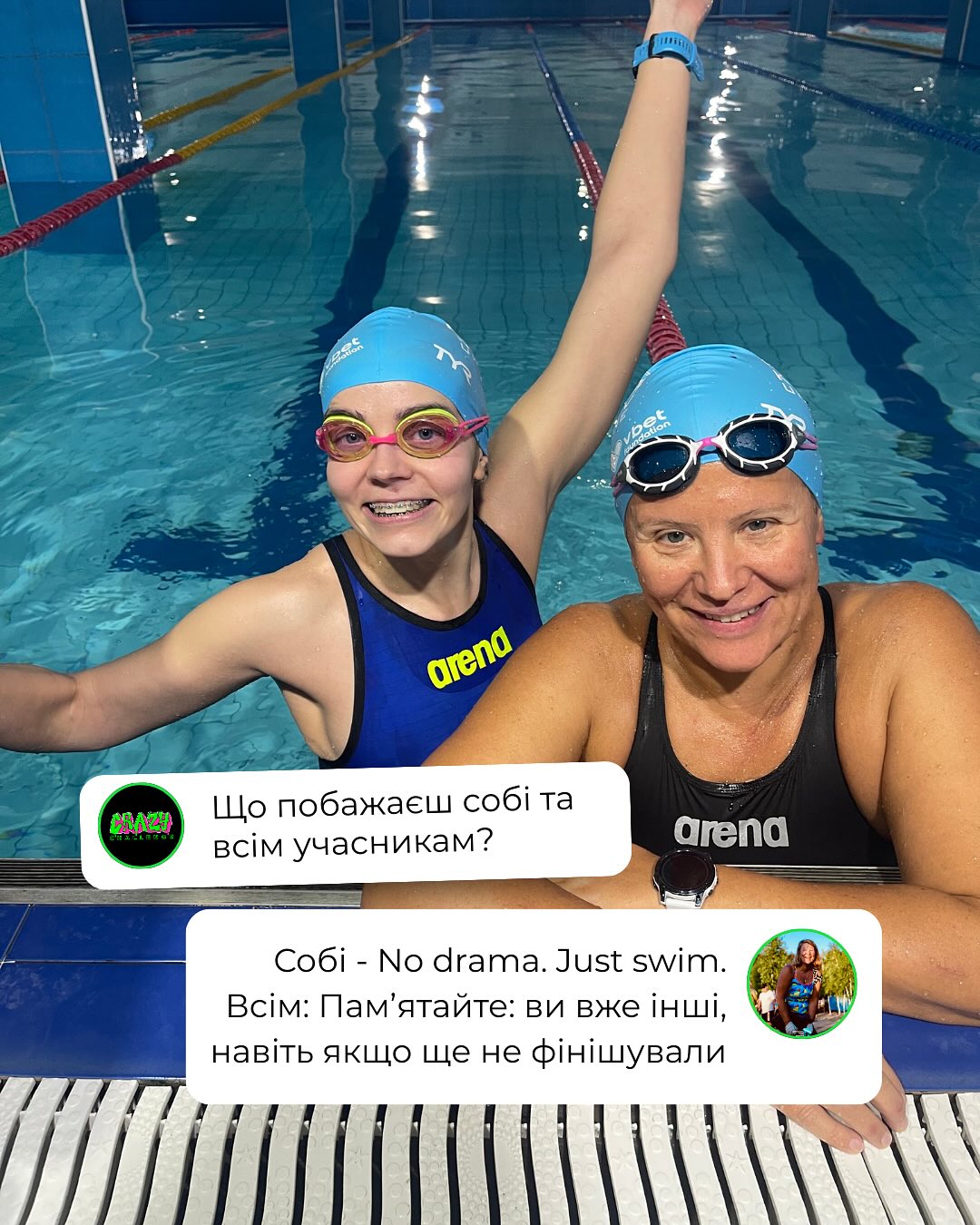 Больше подробностей об этом необычном виде спорта, о подготовке и преодолении физических и психических барьеров Коротко про рассказали организатор челенджа, тренер Александр Дяченко и одна из участниц 24-часового заплыва без спортивного прошлого, одна из организаторов Crazy Challenge - Анастасия Степанчук, которая проплыла 59 км.