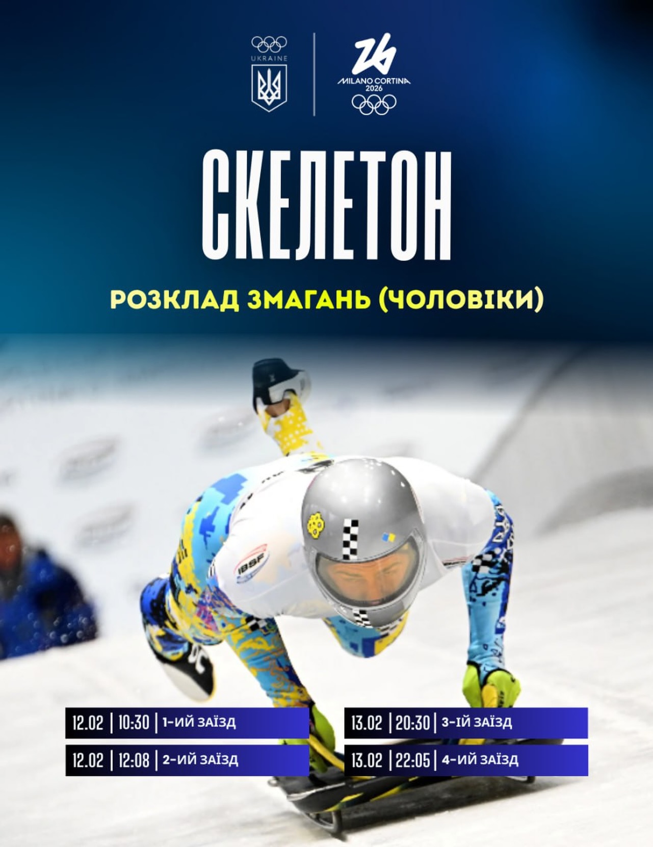 21:00 (везде указано киевское время, в Италии оно на час меньше) - Церемония открытия. Парад наций на стадионе «Сан-Сиро» (Милан). Флаг Украины понесут Владислав Гераскевич (скелетон) и Елизавета Сидорко (шорт-трек).