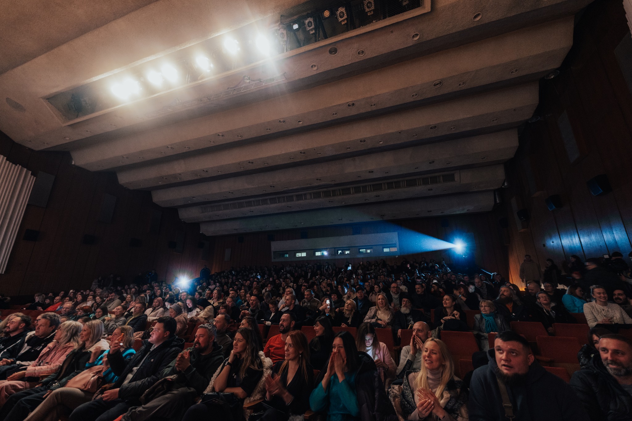 Зал на 670 місць був заповнений, люди також стояли і в проходах. До речі, в той день в Києві тричі лунала повітряна тривога – і просто диво, що відбій пролунав перед початком фільму і була можливість поспілкуватись із творчою групою і переглянути кіно.