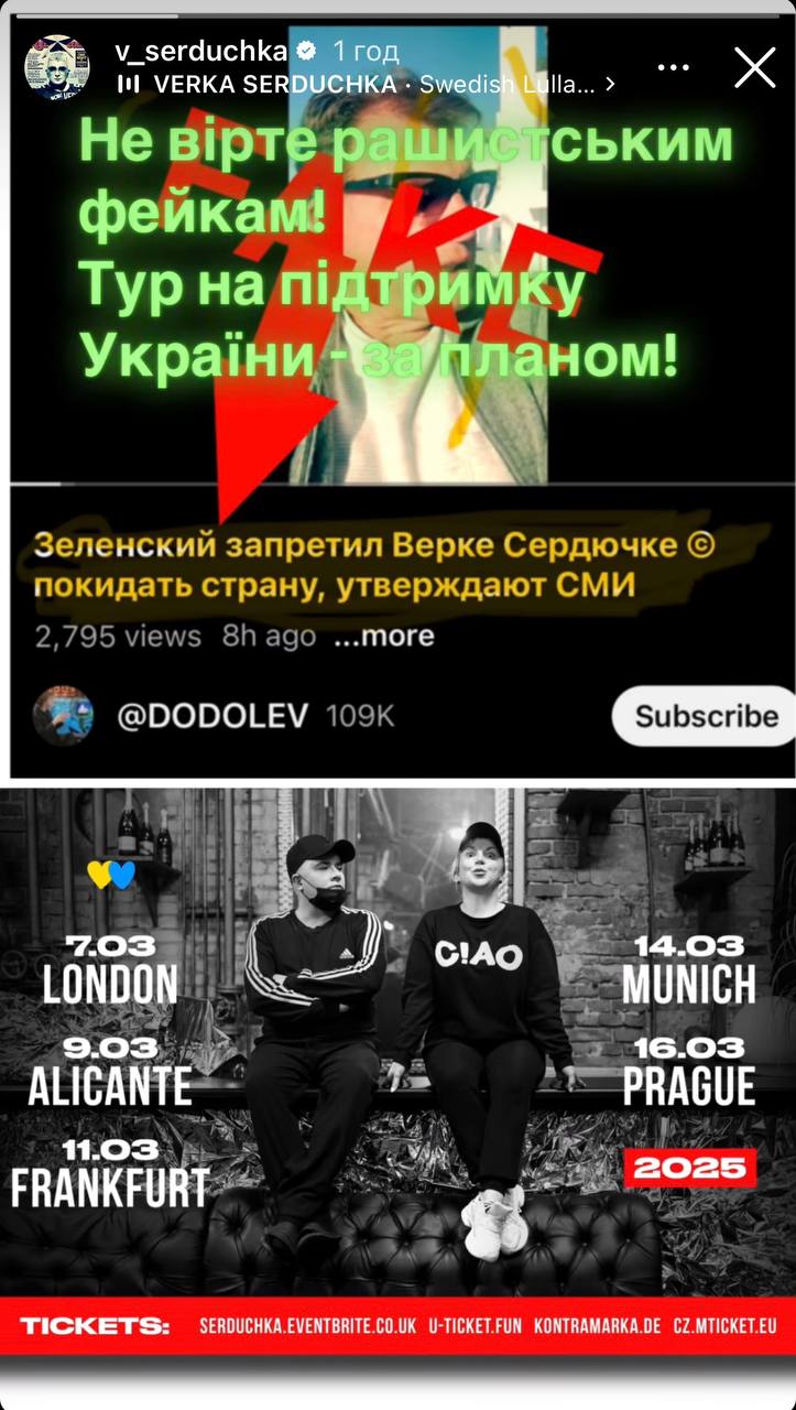 - Не вірте рашистським фейкам. Тур на підтримку України – за планом, – уточнила артистка.