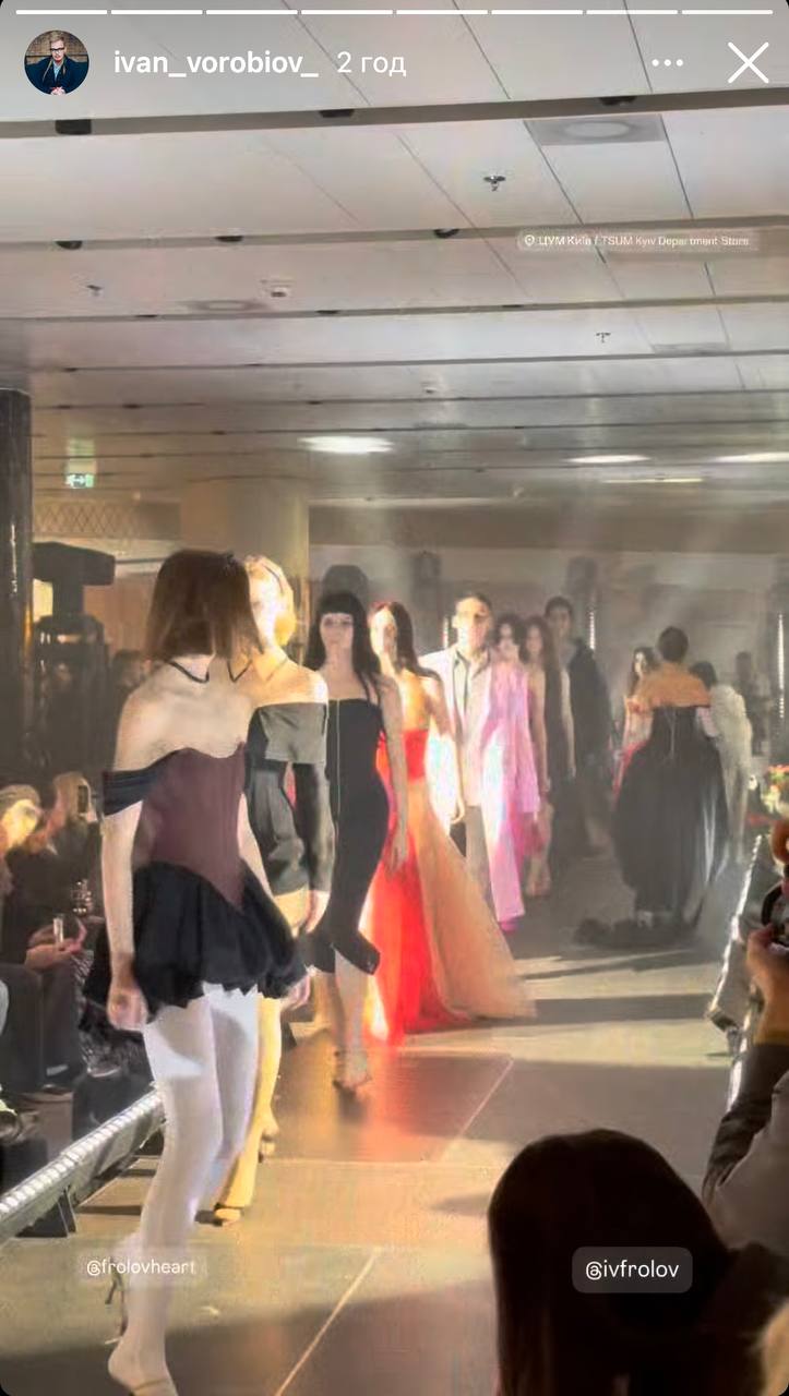 Нова колекція бренду досліджує українську рок-субкультуру 90-х та 2000-х - панк-естетику та повну свободу самовираження. Відкрила показ Ірена Карпа з піснею "Дякую за секс". Письменниця постала перед публікою в пишній сукні з корсетом та прикрашених кристалами рукавичках від Івана Фролова.