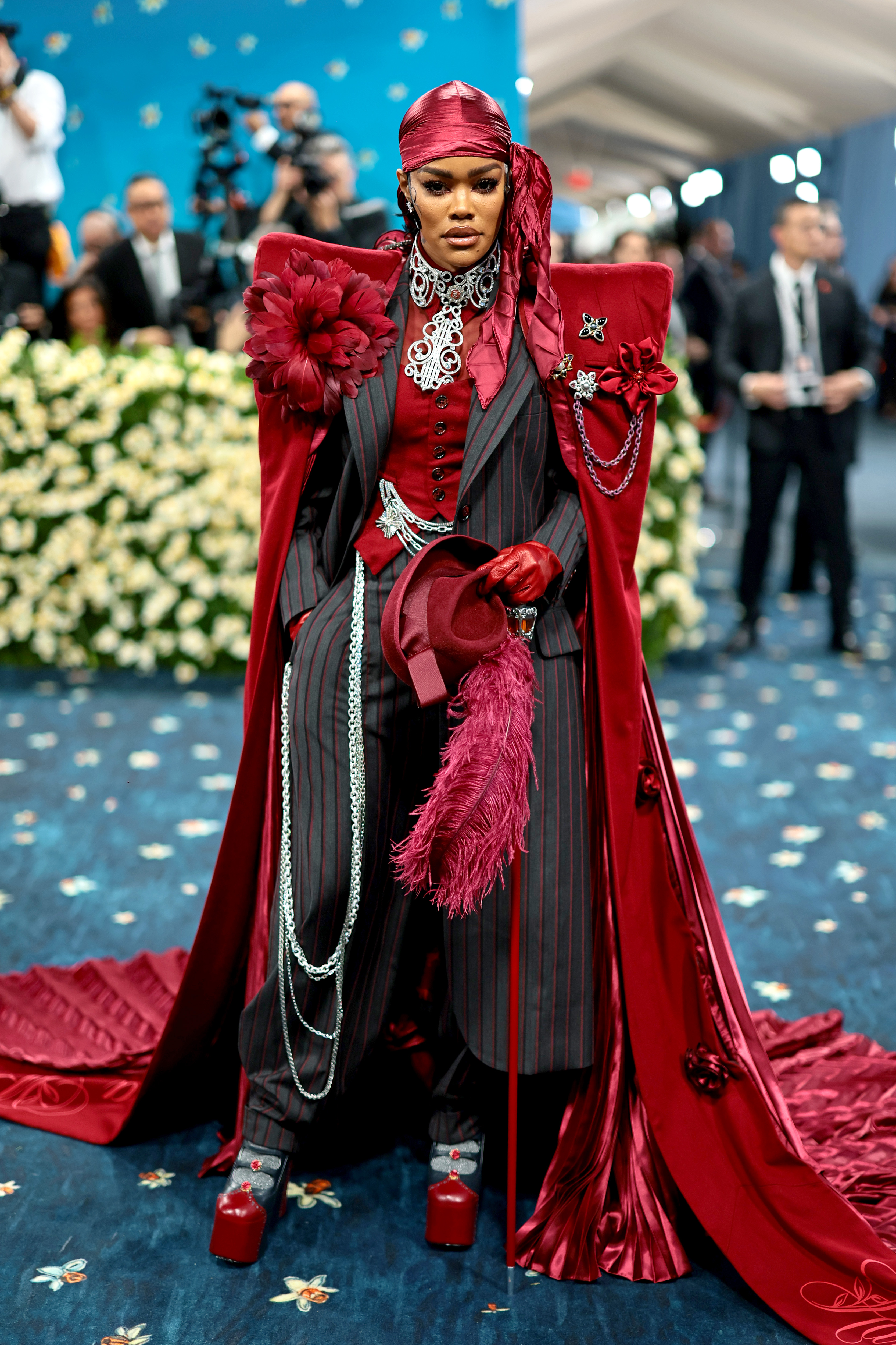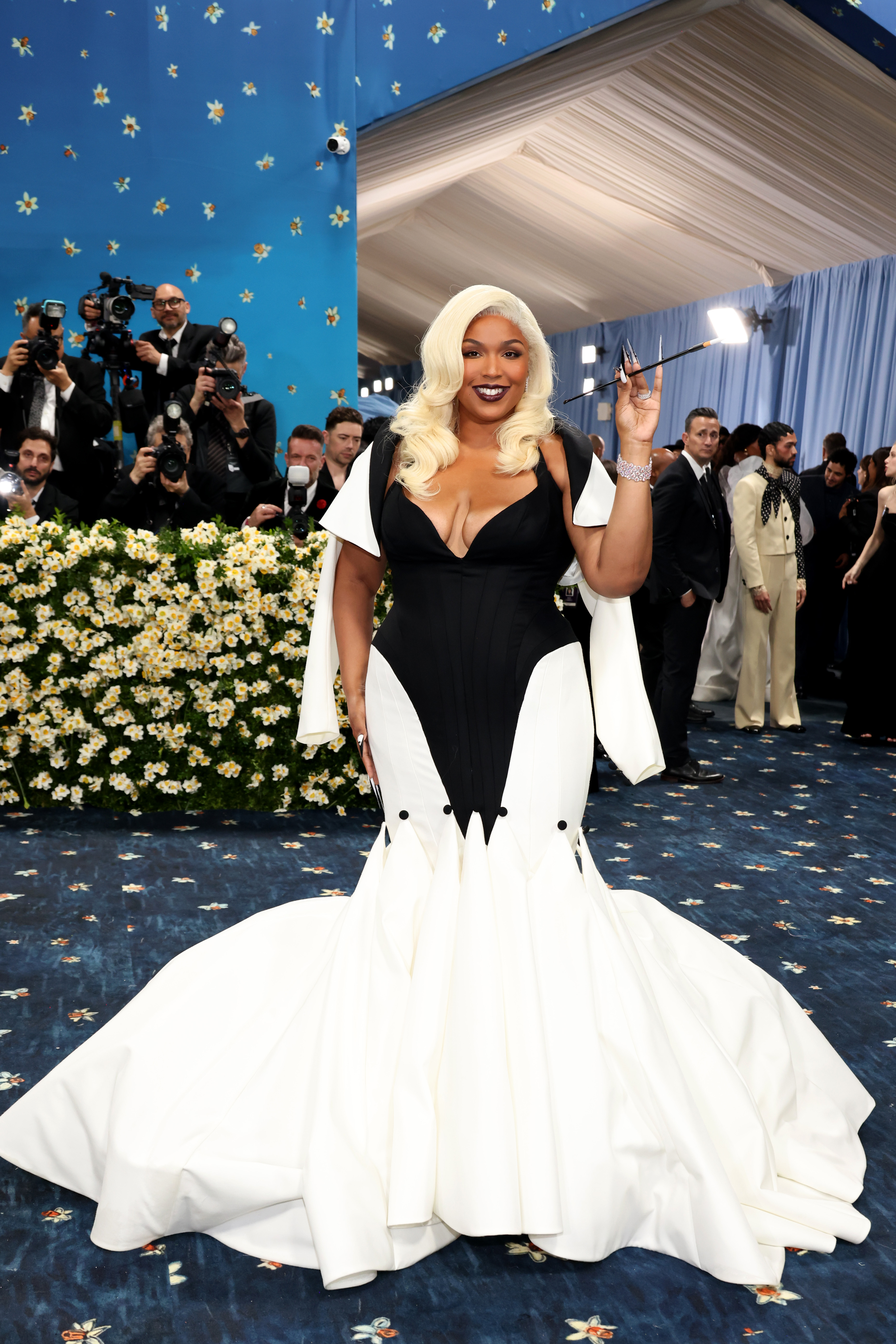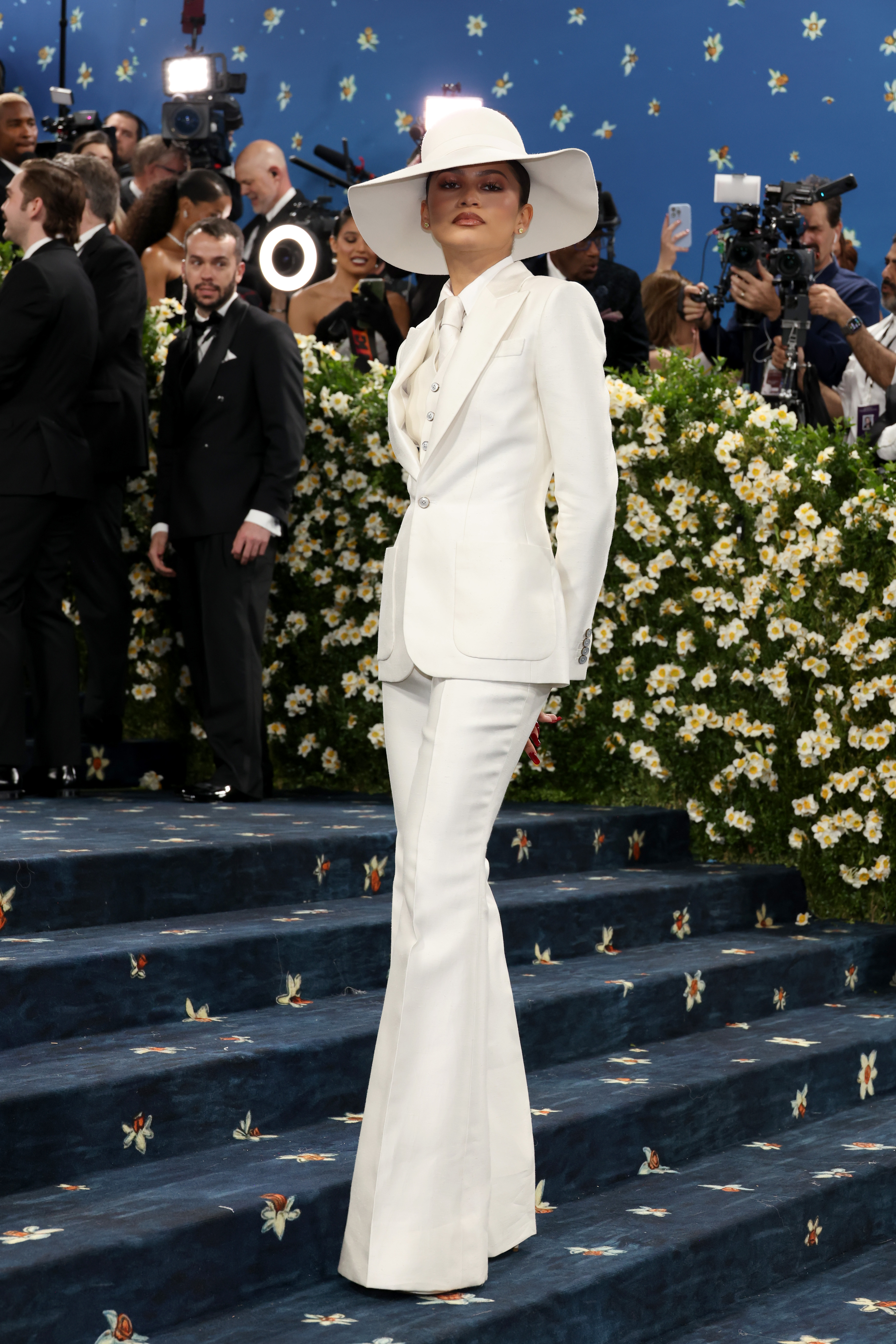 Килимова доріжка Met Gala 2025 була синя з квітковим візерунком. Враховуючи, що на виставці велика увага приділяється чоловічому одягу та костюмам, цього разу багато образів зірок були орієнтовані на пошиття образів – як у класичному та елегантному стилі, так і у більш театральному та авангардному.