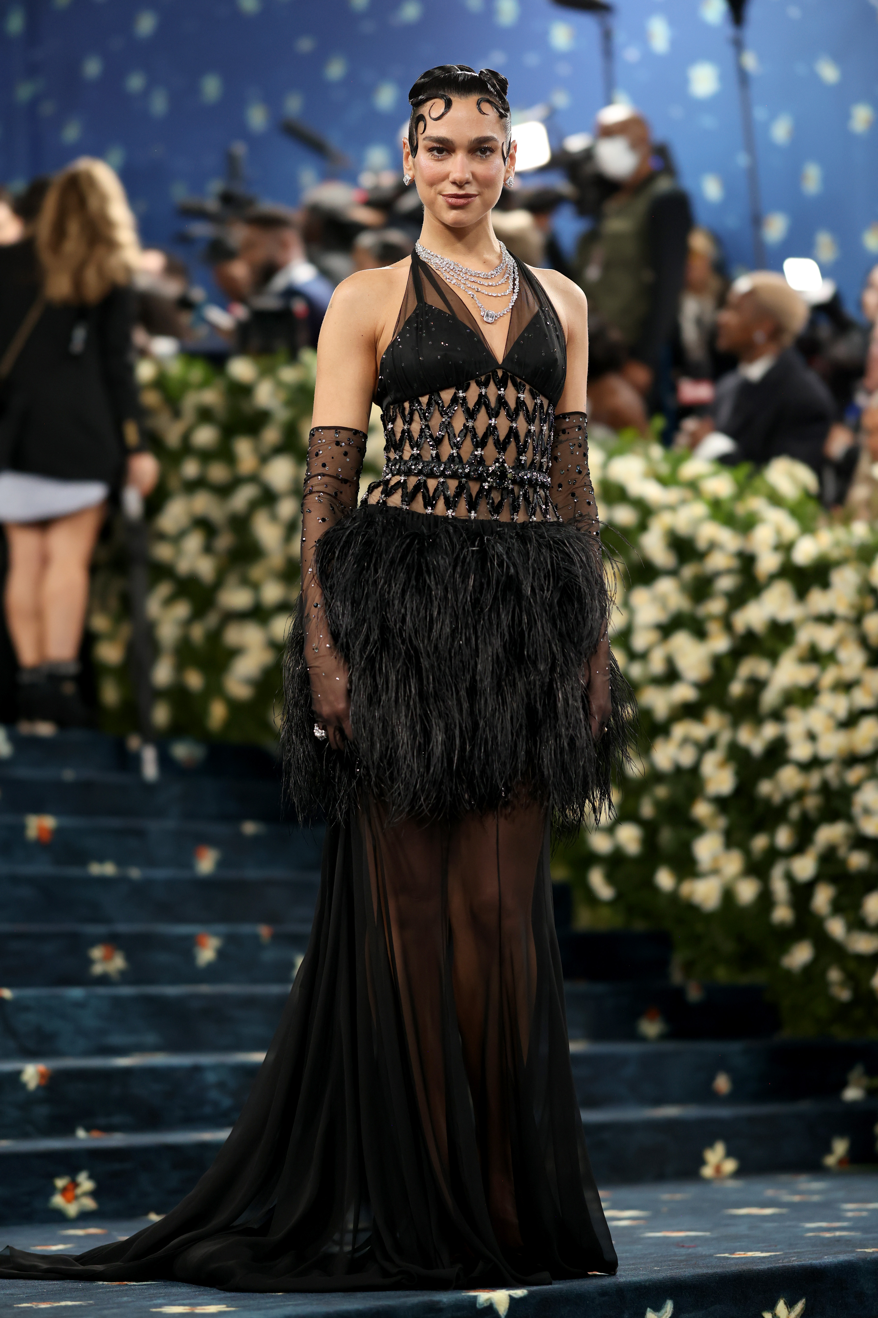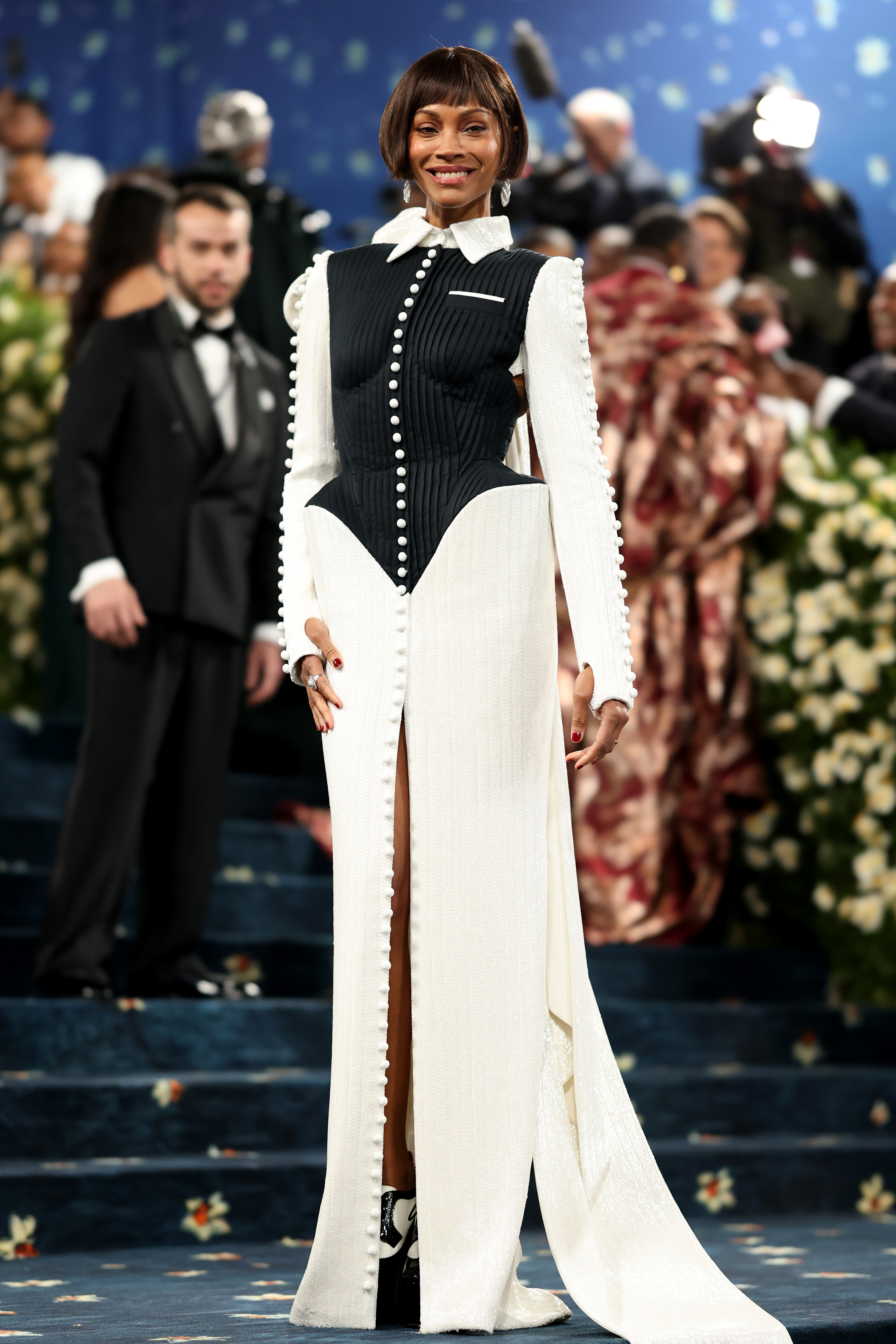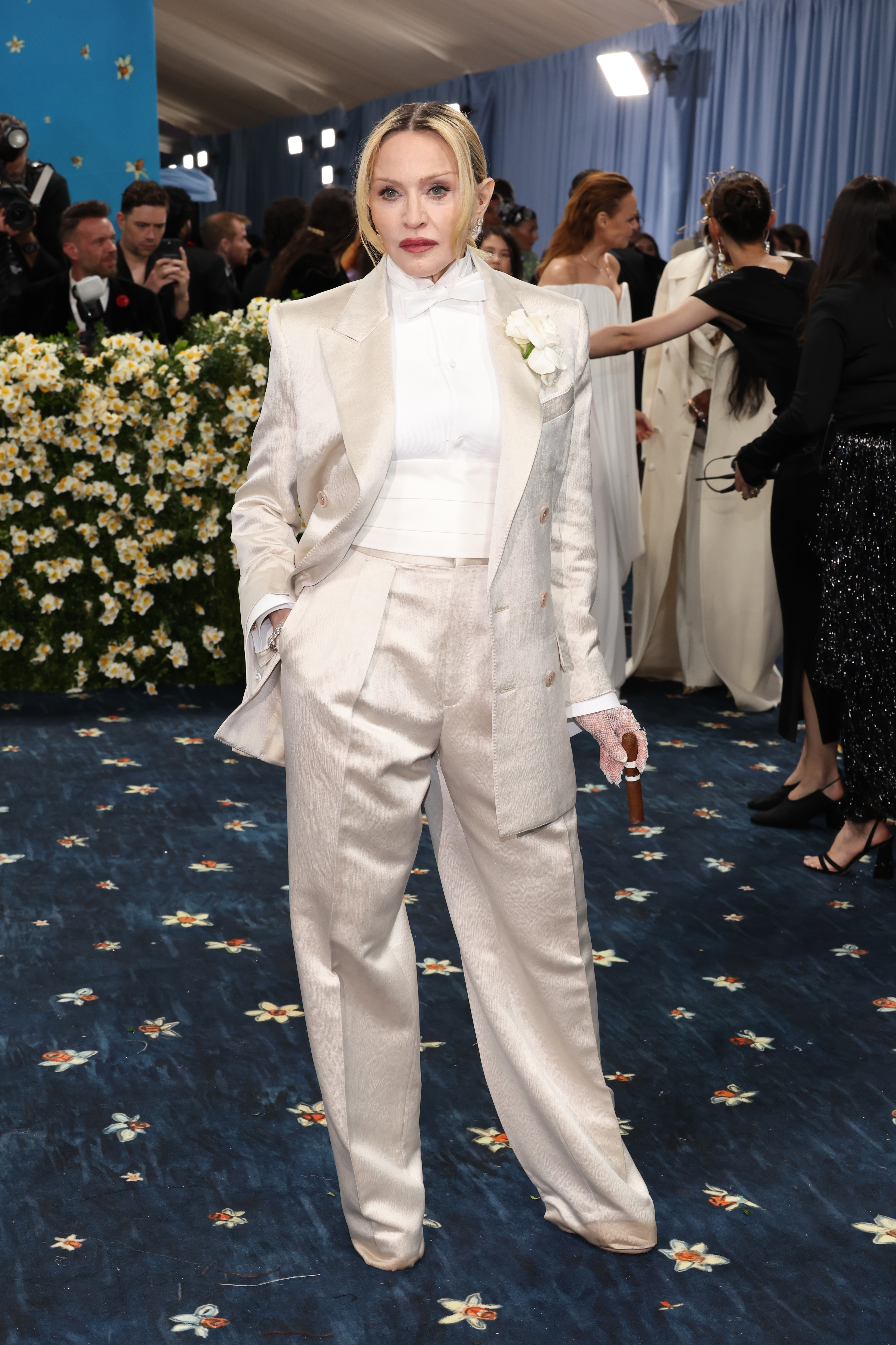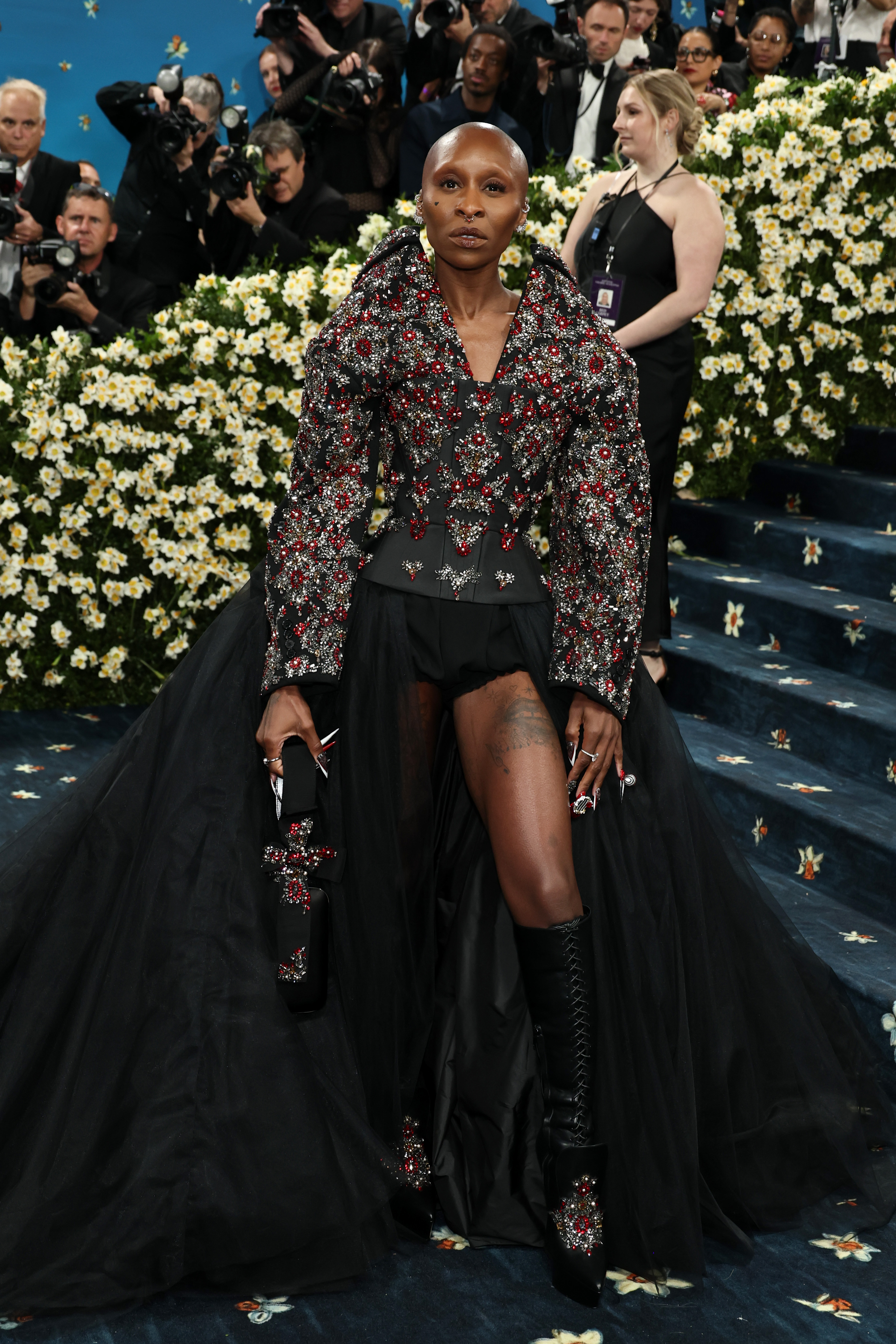 Килимова доріжка Met Gala 2025 була синя з квітковим візерунком. Враховуючи, що на виставці велика увага приділяється чоловічому одягу та костюмам, цього разу багато образів зірок були орієнтовані на пошиття образів – як у класичному та елегантному стилі, так і у більш театральному та авангардному.