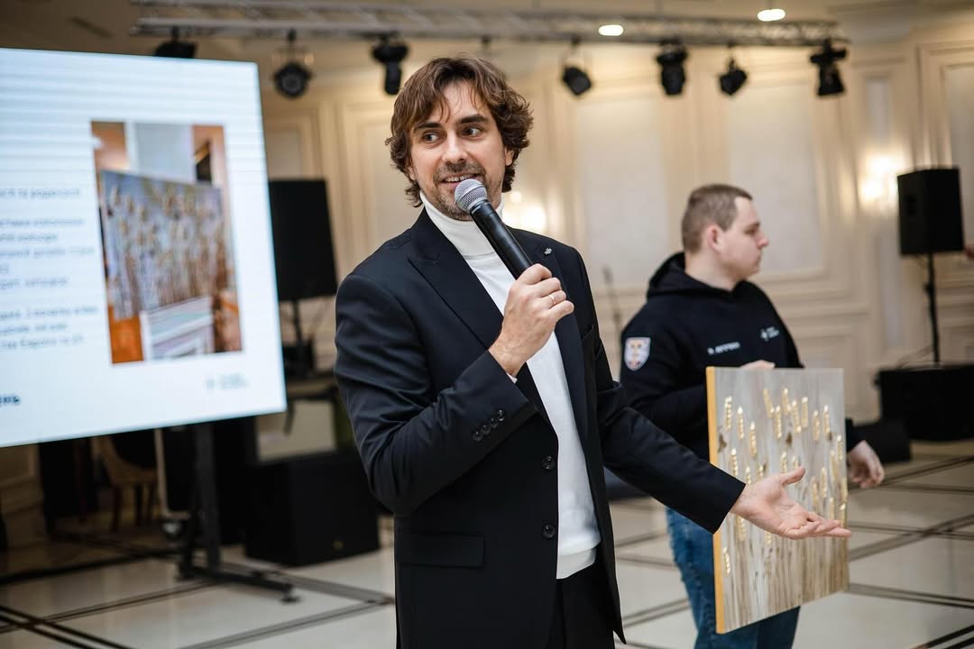Олексій Гнатковський під час одного з аукціонів, де збирали на дрони та протезування бійців. Фото: instagram.com/oleksiygnatkovskiy/