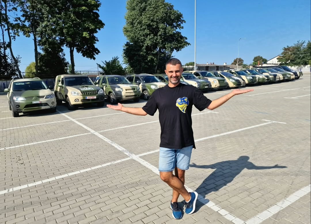 Тарас Стадницький біля придбаних автівок на фронт з концертів «VIP Тернопіль». Фото: instagram.com/vipvolodka/