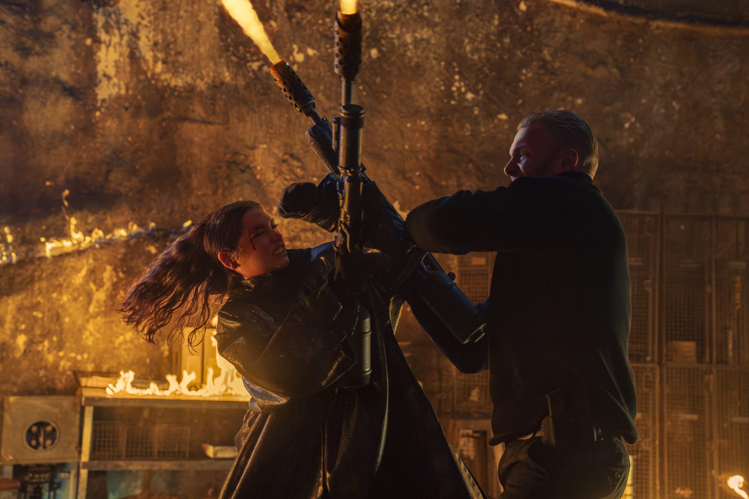На шляху до своєї мети Єва б’ється з усіма бажаючими (і небажаючими) – її бойова багатогранність безмежна: руками, ногами, всілякими видами вогнепальної і холодної зброї та навіть підручними засобами. Навіть перетинається для двобою з самим Джоном Віком. Трішки спойлеру – вік все ж таки дався взнаки Кіану Рівзу, тож його бійки вже не такі запаморочливі.