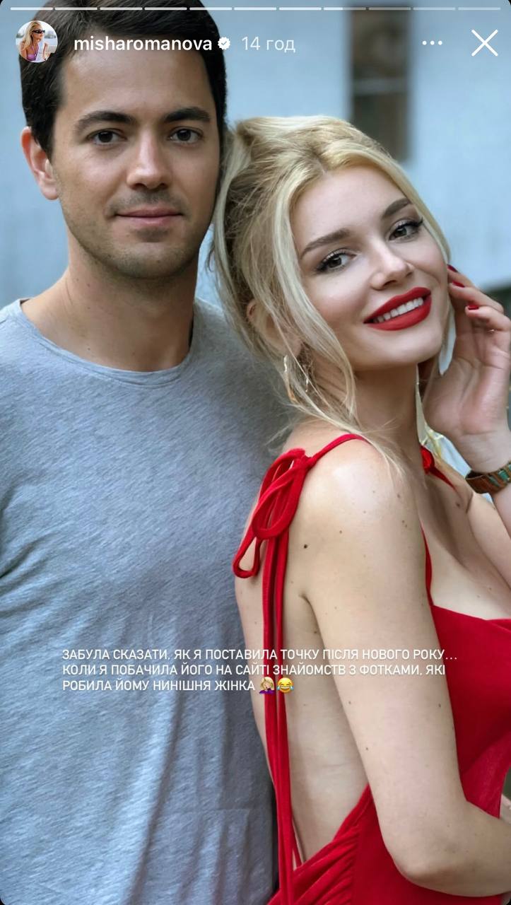 Співачка Міша Романова розкрила, чому розірвала стосунки з ексрадником президента Зеленського з економічних питань Олександром Роднянським-молодшим. Відповідаючи на питання підписників в сторіс Instagram, артистка спочатку розмістила архівне фото, на якому зображена в обіймах зі своїм колишнім бойфрендом, а пізніше зазначила, що пара розійшлася після того, як вона побачила його профіль на сайті знайомств. За словами Міші, зараз Роднянський-молодший перебуває в нових стосунках.