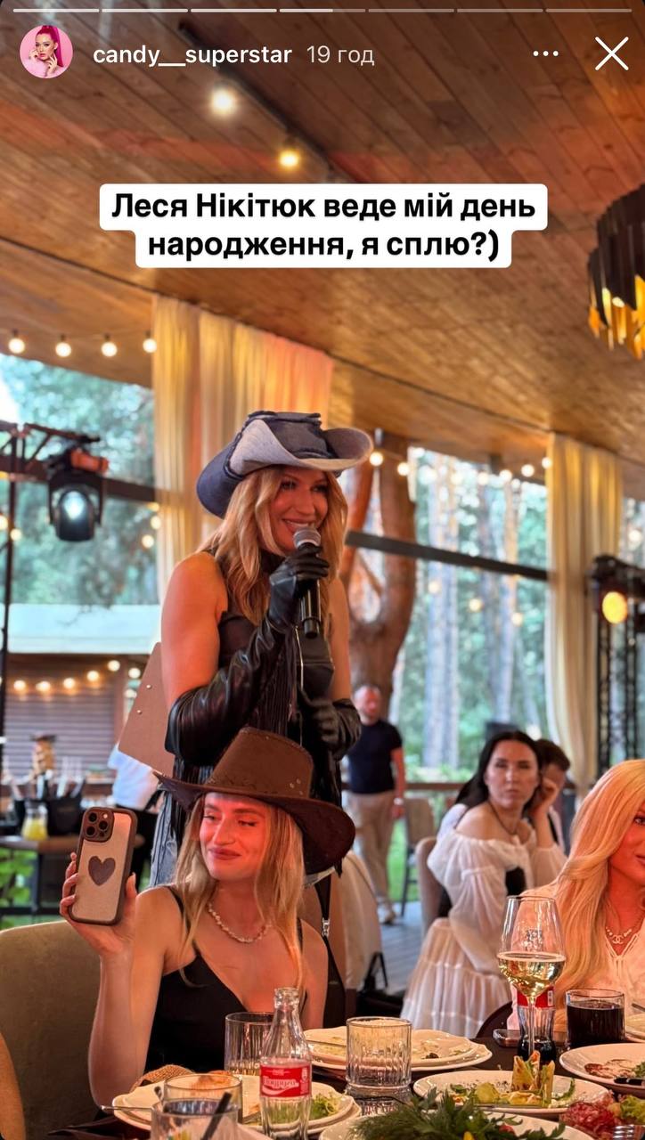 Несподіванкою для гостей стала поява на святі телеведучої Лесі Нікітюк, яка лише через місяць після пологів провела корпоратив у ковбойському образі та підготувала іронічну пісню для іменинниці.
