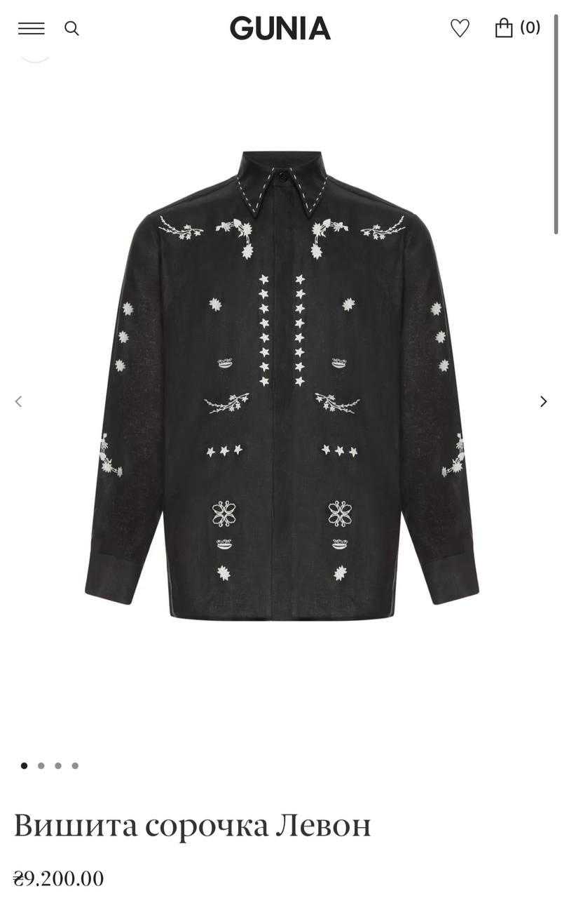 Вишиванка Левон оздоблена вишивкою, натхненною наївними рушниками XX століття та зразками із власної колекції власниць бренду. Ну рукаві сорочки вишили ініціали "P.H". На сайті бренду така вишиванка продається за 9,2 тис гривень.