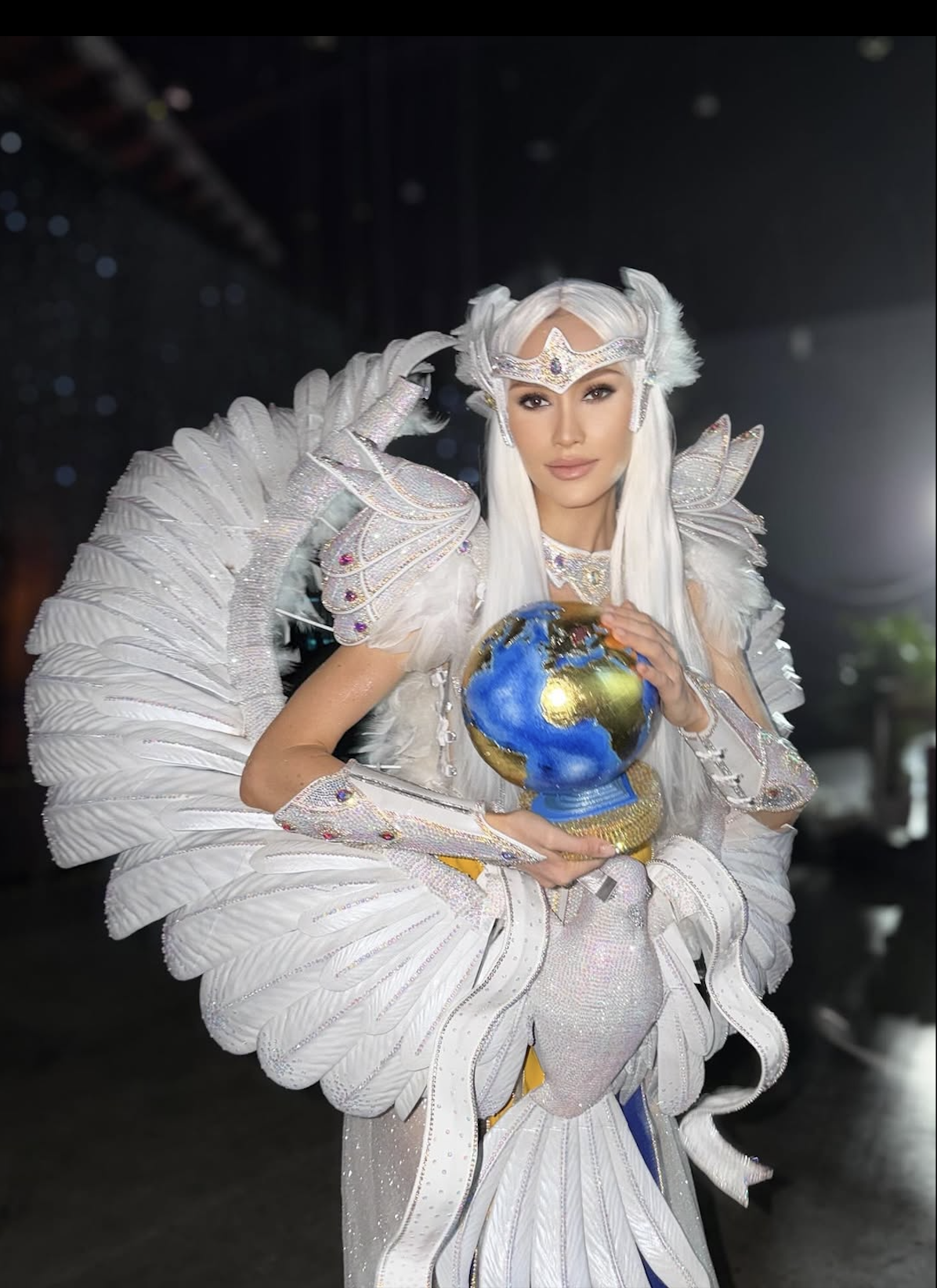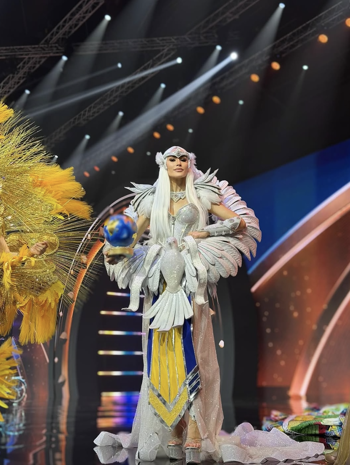Міс Україна Всесвіт - 2025 Софія Ткачук представила національний костюм "Голуб миру" на конкурсі в тайському Бангкоку.