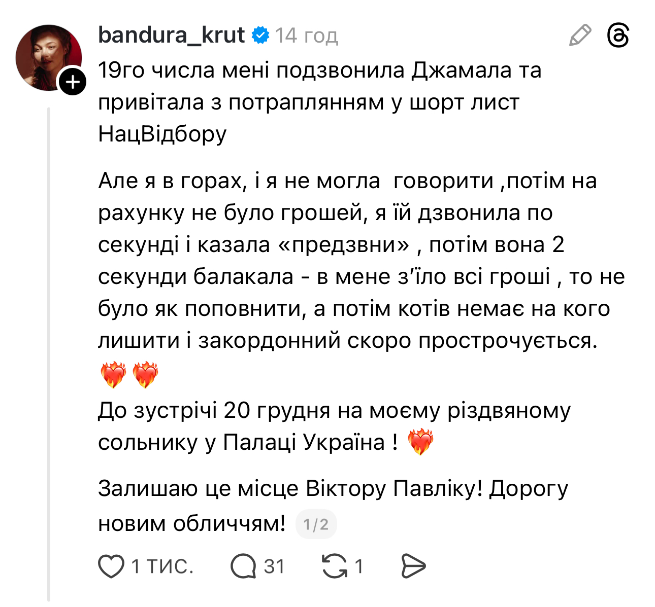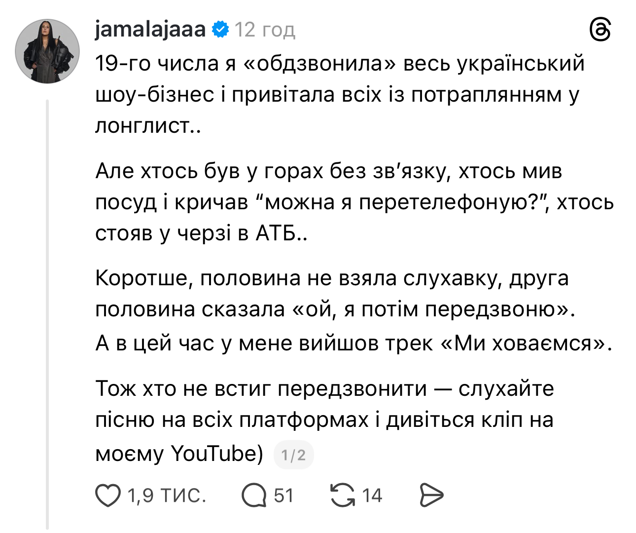 Врешті до флешмобу підключилась і сама продюсерка Нацвідбору, яка підтвердила, що 19 листопада таки обдзвонила весь український шоубізнес.