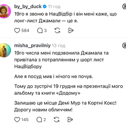 Допис співака Melovin про те, що 19 листопада йому подзвонила Джамала і привітала із потраплянням у лонглист Нацвідбору, породив купу мемів та навіть запустив флешмоб. Колеги почали пародіювати його допис. Otoy, Марина Krutь, Абіє, Василь Байдак, Шугар, Міша Правильний та інші у жартівливій манері стверджують, що їм теж 19-го дзвонила Джамала.