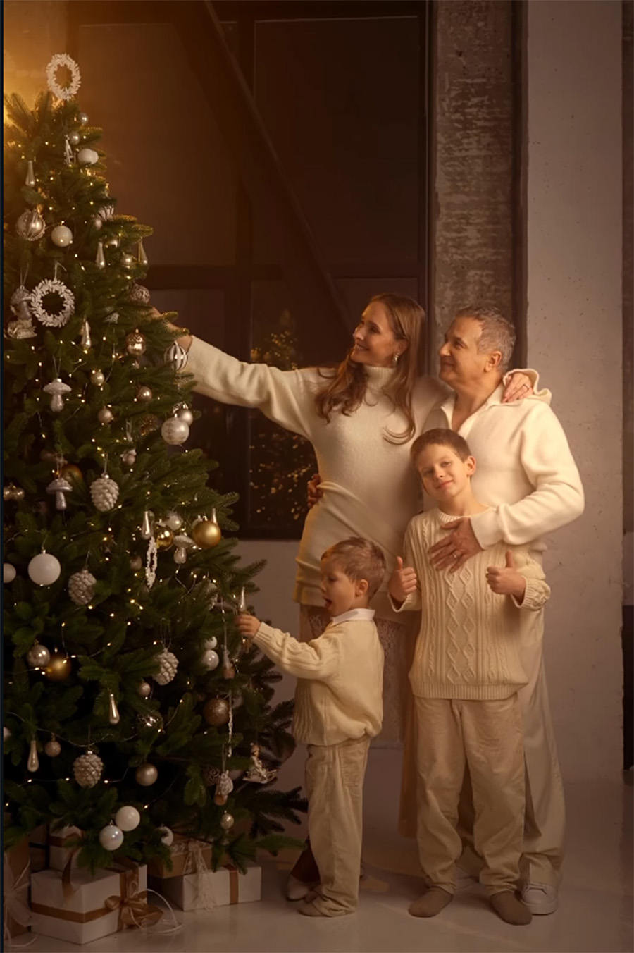 У сім’ї Тімура та Інни Мірошниченків ялинку традиційно прикрашають всією родиною. А потім Тімур та Інна з Мією, Марселем, Марком та Ангеліною кумедно танцюють та веселяться біля створеної ними красуні.