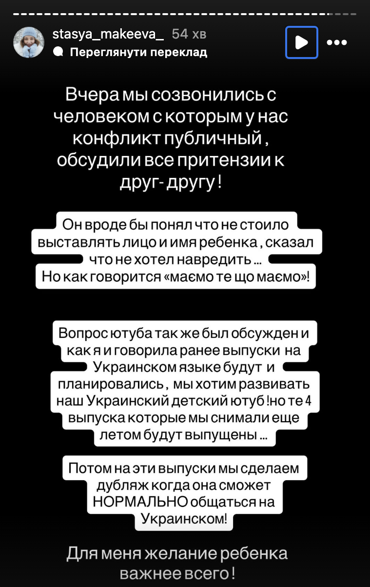Макєєва підтвердила, що у майбутньому планує випускати відео українською мовою, а на випуски російською зроблять дубляж, "коли донька зможе нормально спілкуватися українською".