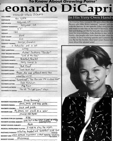 Ведуча пожартувала, що Леонардо Ді Капріо дав найдокладніше інтерв'ю у 1991 році для журналу Teen Beat. У мережі вже знайшли його. Інтерв'ю виявилось анкетою, яку актор, який тоді був ще підлітком, заповнив від руки. У ній він назвав пасту своєю улюбленою стравою, а реггі — улюбленим музичним жанром.