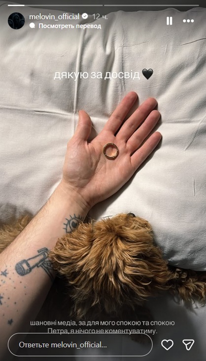 Український співак MELOVIN розлучився зі своїм коханим Петром, з яким побрався у листопаді 2025 року. Про це артист повідомив у своєму Інстаграмі.