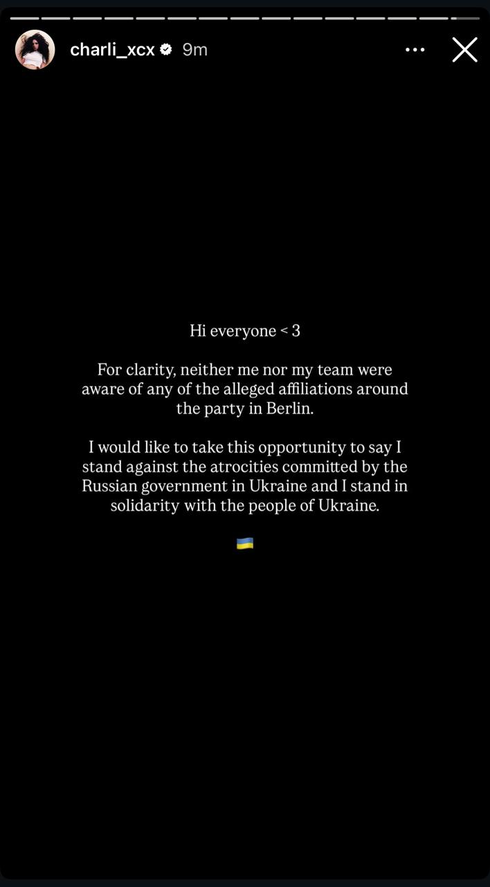 Charli XCX не знала про причетність росіянки до організації афтепаті у Берліні. Про це британська співачка написала в Instagram.