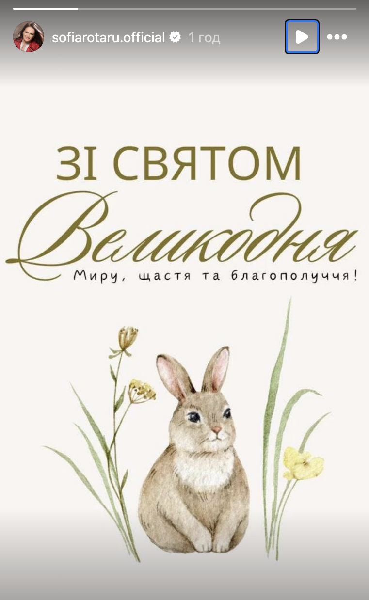 Її сестра 78-річна Софія Ротару також привітала українців із Великоднем, проте обмежилась листівкою у інстаграм-історіях.