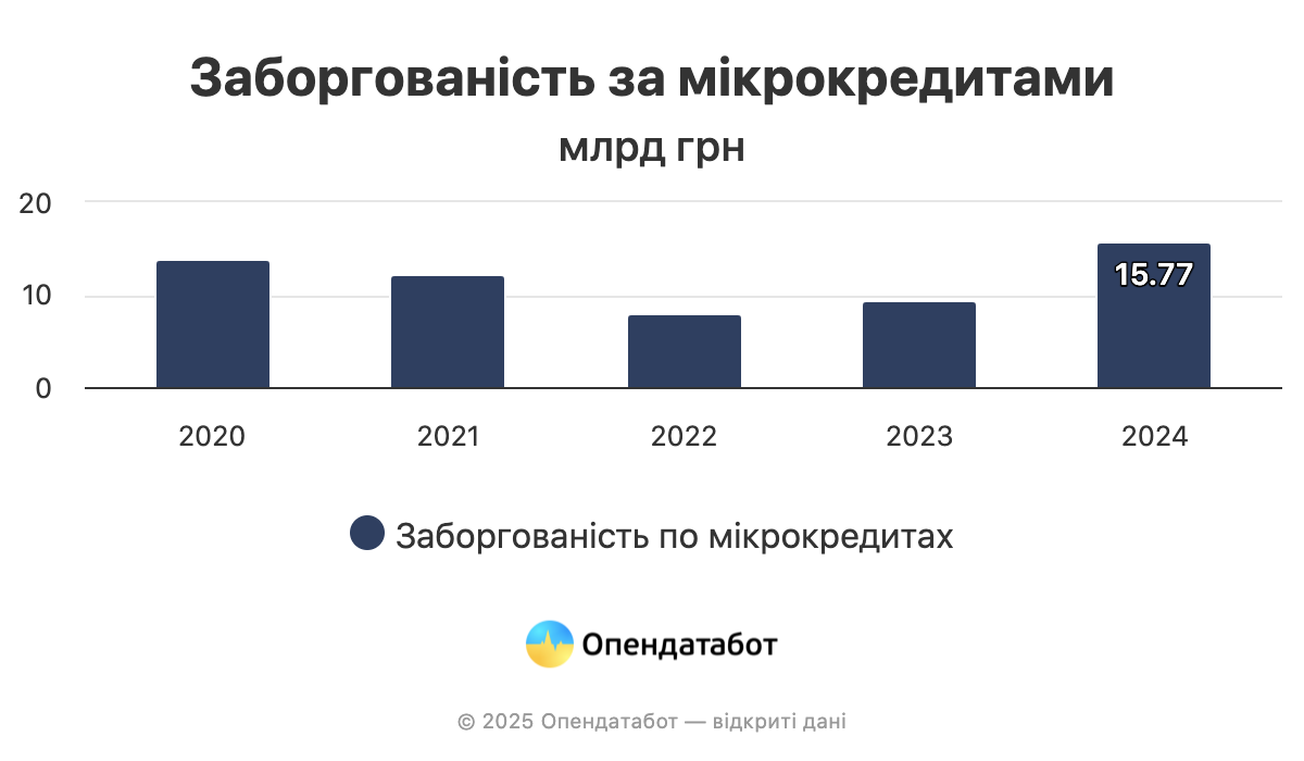 Втім, в цілому борги лише збільшувались. За перші три квартали заборгованість за мікрокредитами подвоїлась: з 9,3 млрд грн вона зросла до 18,47 млрд грн. Під кінець року борг поменшав на 2,7 млрд грн, але загальну картину це покращити не допомогло: заборгованість українців перед МФО на початок поточного року складає 15,77 млрд грн. Це у 1,7 рази, або на 6,47 млрд грн, більше, ніж на початку 2024-го.