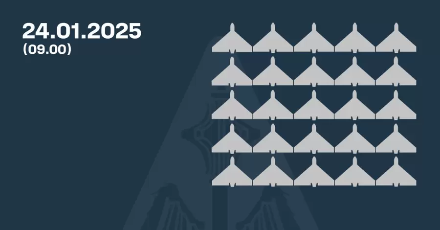 У ніч на 24 січня Росія атакувала 58 ударними БпЛА типу Shahed і безпілотниками-імітаторами різних типів. Ворог направив свої дрони з Орла, Курська, Брянська, Приморсько-Ахтарська, повідомили у Повітряних силах ЗСУ.