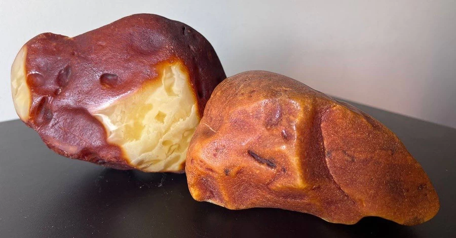 Відправники вказали їх як сувеніри, але експертиза підтвердила, що це дорогоцінне каміння органогенного походження – необроблений бурштин виду сукциніт. Розміри зразків унікальні: найдовший досягає 158 мм, інший – 151 мм.